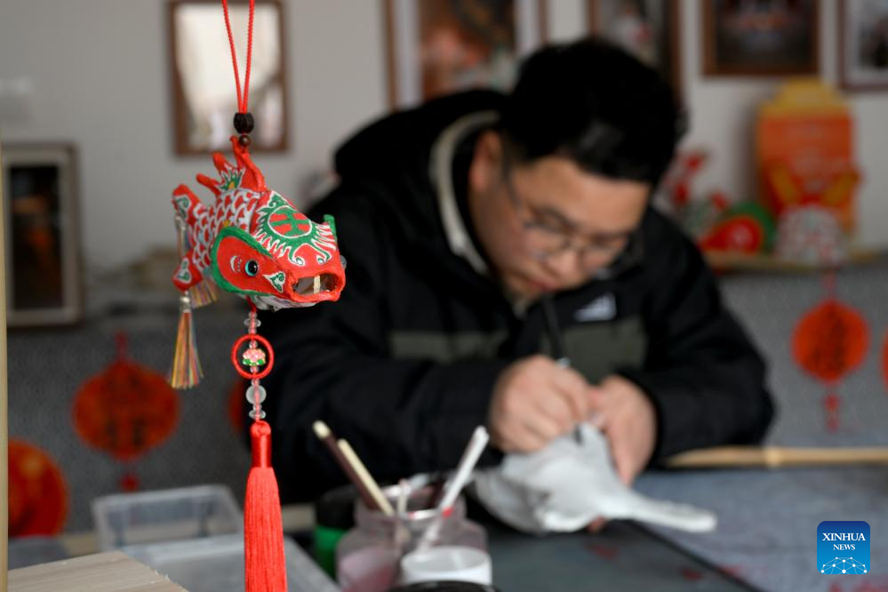 A craftsman makes a fish-shaped lantern at Zhanqi Village in Shexian County of Huangshan City, east China's Anhui Province, Jan. 6, 2025. (Xinhua/Zhang Duan)