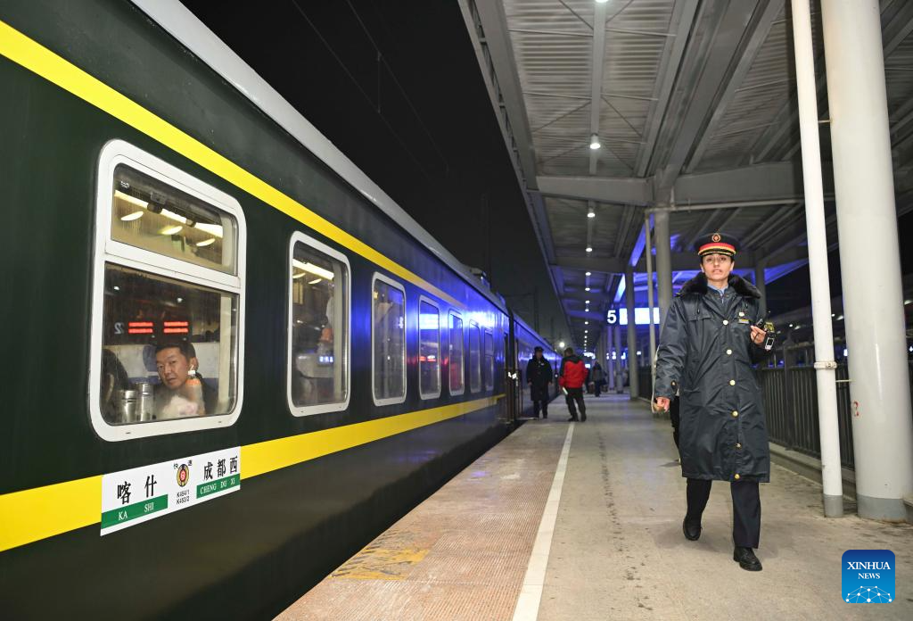 During Spring Festival travel season, she serves as the train conductor on the railway route linking Kashgar of northwest China's Xinjiang Uygur Autonomous Region and Chengdu of southwest China's Sichuan Province.