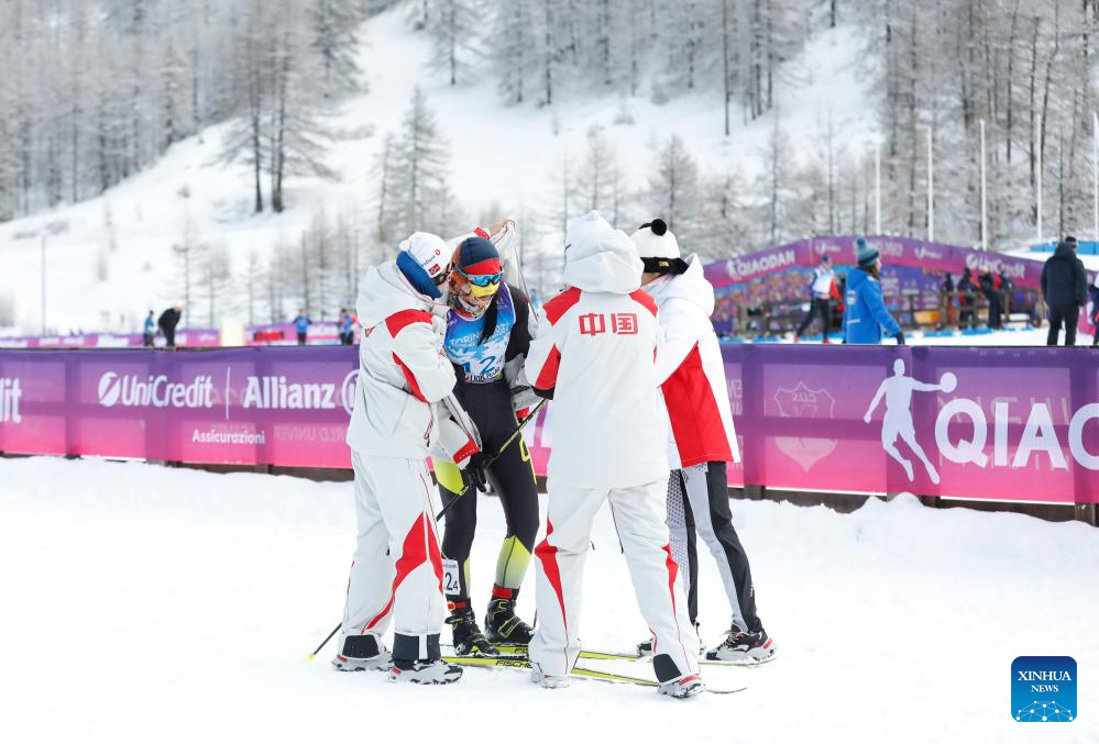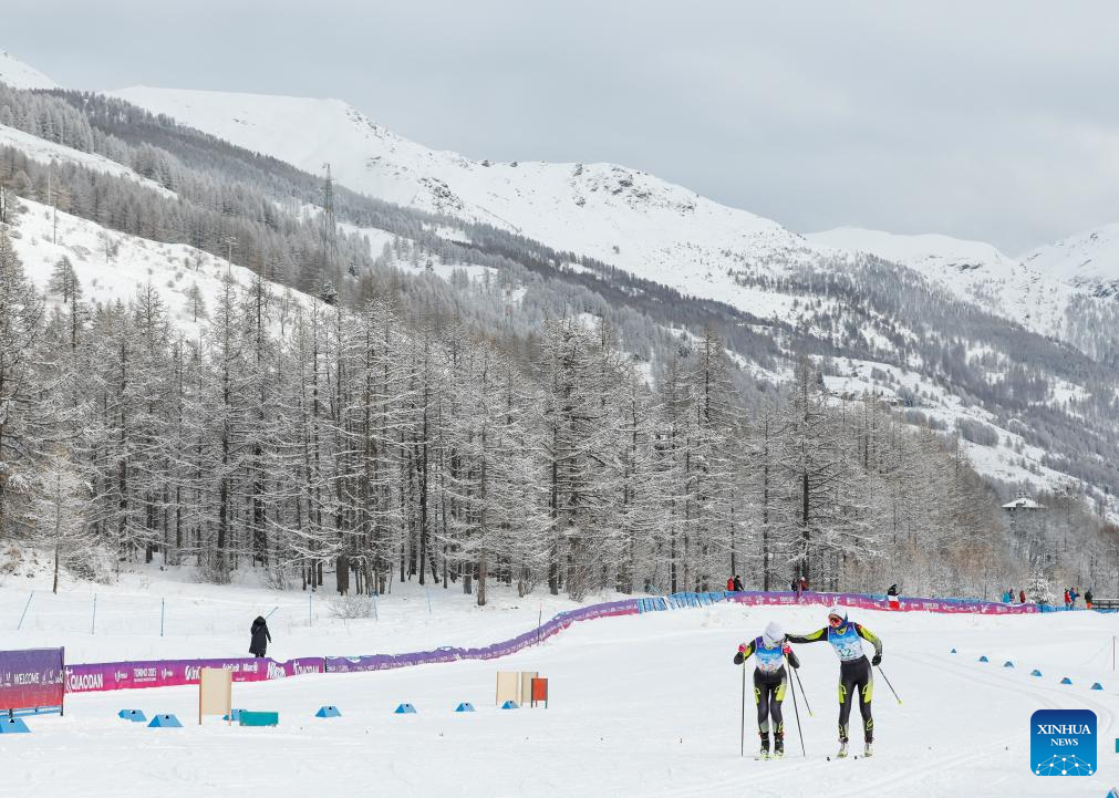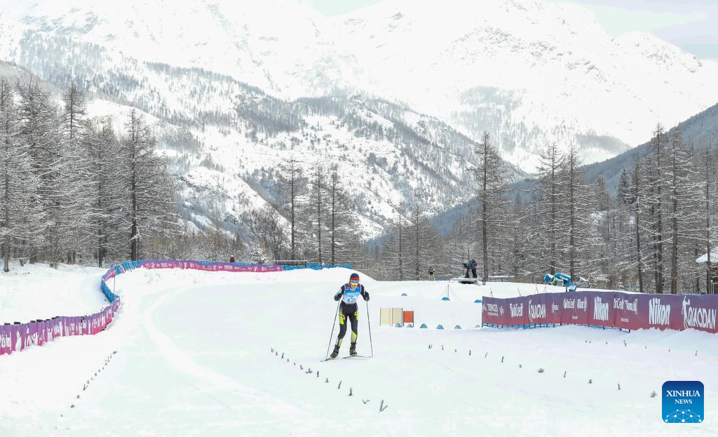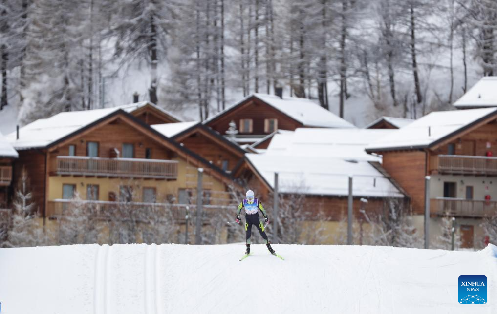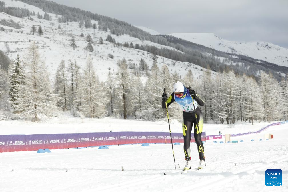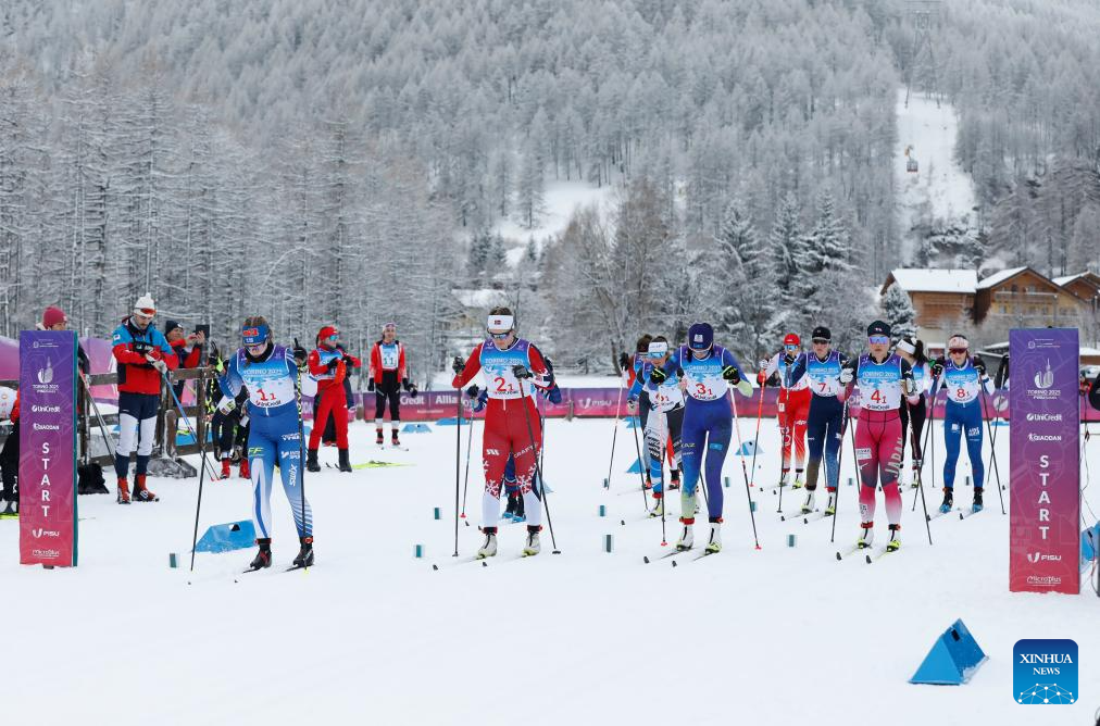 Zang Xiaokun of China competes during the cross-country skiing women's 4x7.5km relay at the 2025 FISU Winter World University Games in Pragelato, Italy, Jan. 21, 2025. (Xinhua/Zhang Fan)