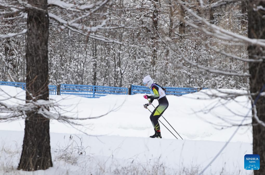 Shang Zitong of China competes during the cross-country skiing women's 4x7.5km relay at the 2025 FISU Winter World University Games in Pragelato, Italy, Jan. 21, 2025. (Xinhua/Zhang Fan)