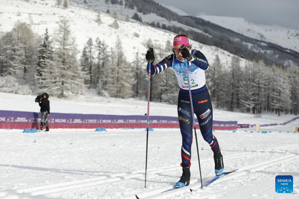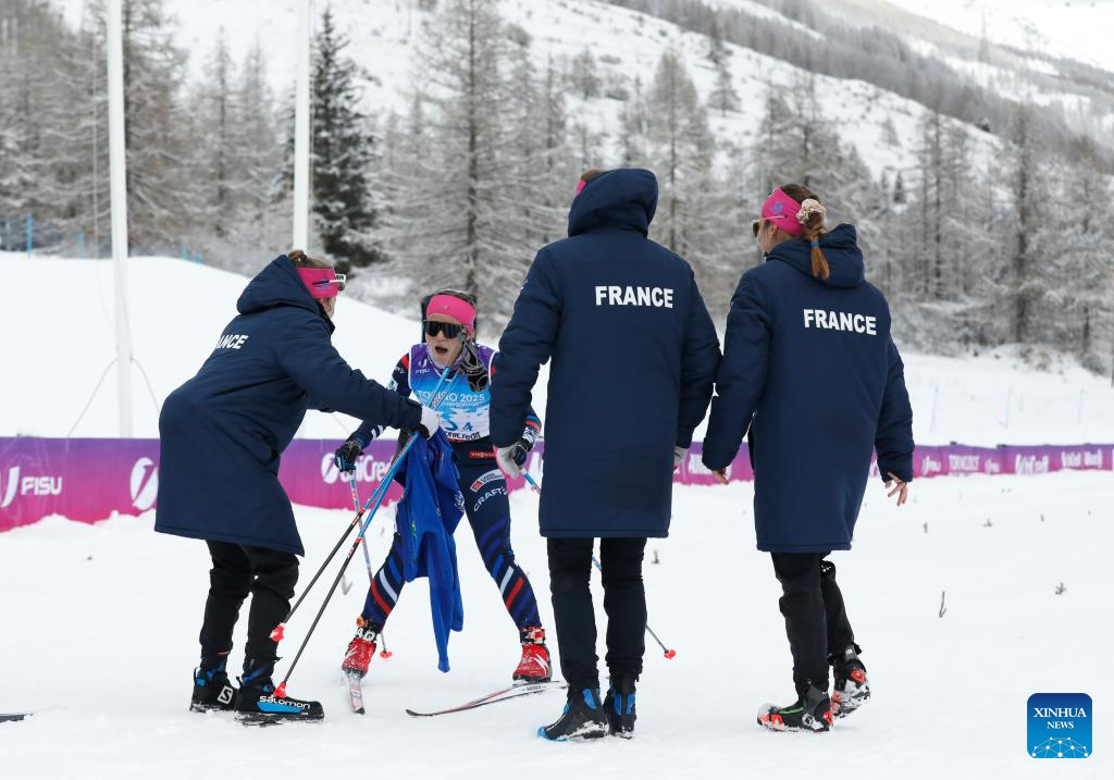 Manon Favre Bonvin of France competes during the cross-country skiing women's 4x7.5km relay at the 2025 FISU Winter World University Games in Pragelato, Italy, Jan. 21, 2025. (Xinhua/Zhang Fan)