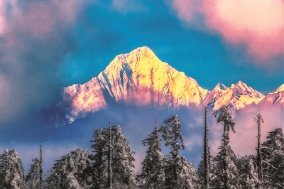 Photo shows snow-topped Gongga Mountain in southwest China's Sichuan Province. (Photo courtesy of the Wanggangping Scenic Area)