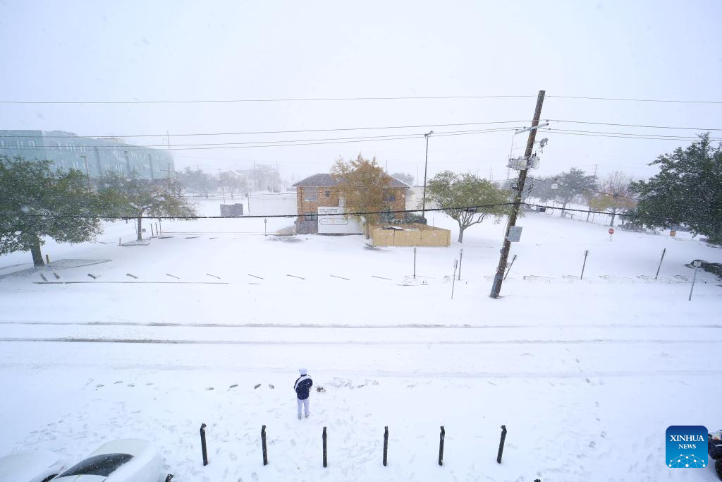 HOUSTON, Jan. 22 (Xinhua) -- A rare winter storm, known as Enzo, has swept through the southern U.S. with record-breaking snow and bitterly cold weather to typically mild regions along the Gulf Coast, claiming at least nine lives as of Wednesday morning.