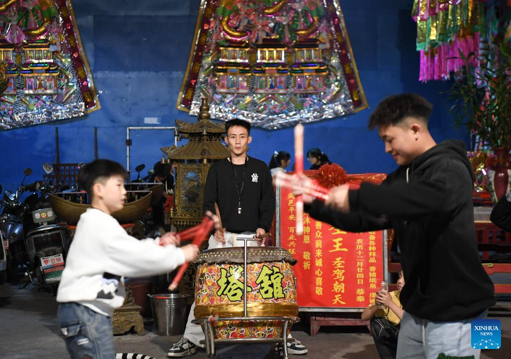 Members of an Yingge dance troupe take part in a rehearsal in Chaoyang District of Shantou City, south China's Guangdong Province, Jan. 21, 2025. Local Yingge dance troupes have been busy in rehearsing for performances to greet the upcoming Chinese New Year. The Yingge dance, or "dance to the hero's song," merges opera, dance, and martial arts. Dating back to the Ming Dynasty (1368-1644), this traditional dance is often performed during traditional Chinese festivals. The Yingge dance was listed as the first batch of national intangible cultural heritage in 2006. (Xinhua/Deng Hua)