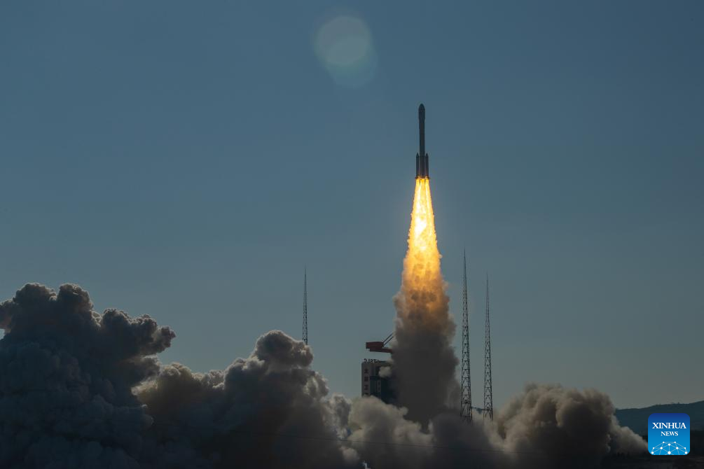 A satellite group is launched aboard a modified Long March-6 carrier rocket from the Taiyuan Satellite Launch Center in north China's Shanxi Province, Jan. 23, 2025. The satellite group, which is the sixth batch that will constitute the Spacesail Constellation, was launched at 1:15 p.m. (Beijing Time) and entered its preset orbit successfully. (Photo by Zheng Taotao/Xinhua)