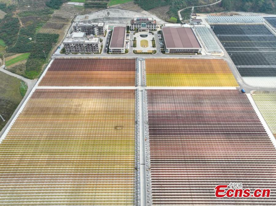 Aerial view of the world's largest astaxanthin production base in Pingbian County, Honghe Prefecture, southwest China's Yunnan Province, Jan. 23, 2025. (China News Service/Liu Ranyang)