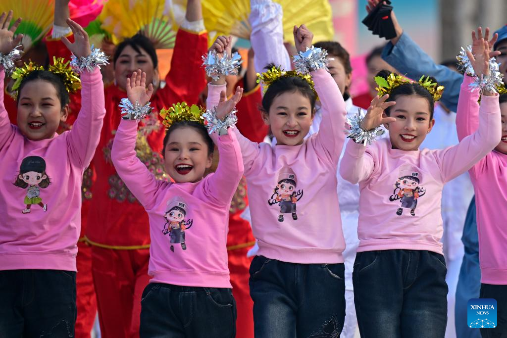 Children perform during a "village gala" in Shache County of Kashgar, northwest China's Xinjiang Uygur Autonomous Region, Jan. 22, 2025.