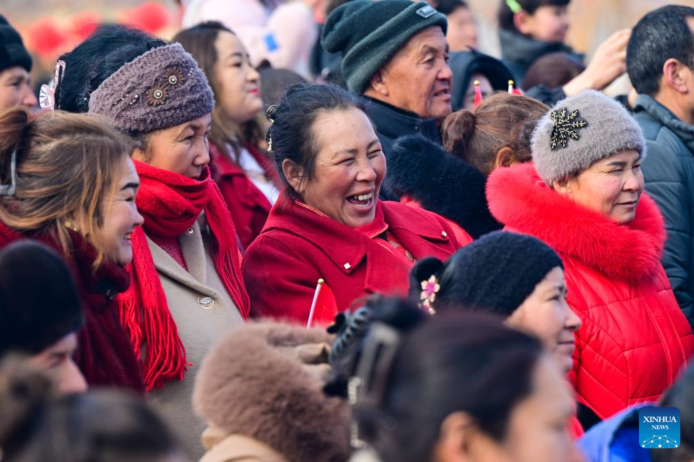 Residents watch performance during a "village gala" in Shache County of Kashgar, northwest China's Xinjiang Uygur Autonomous Region, Jan. 22, 2025.