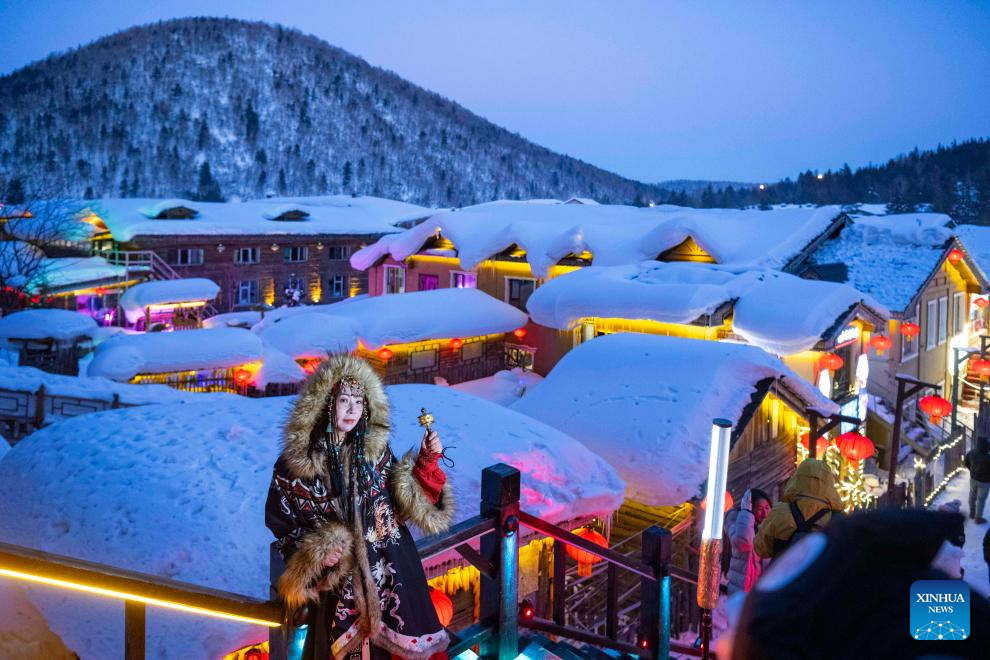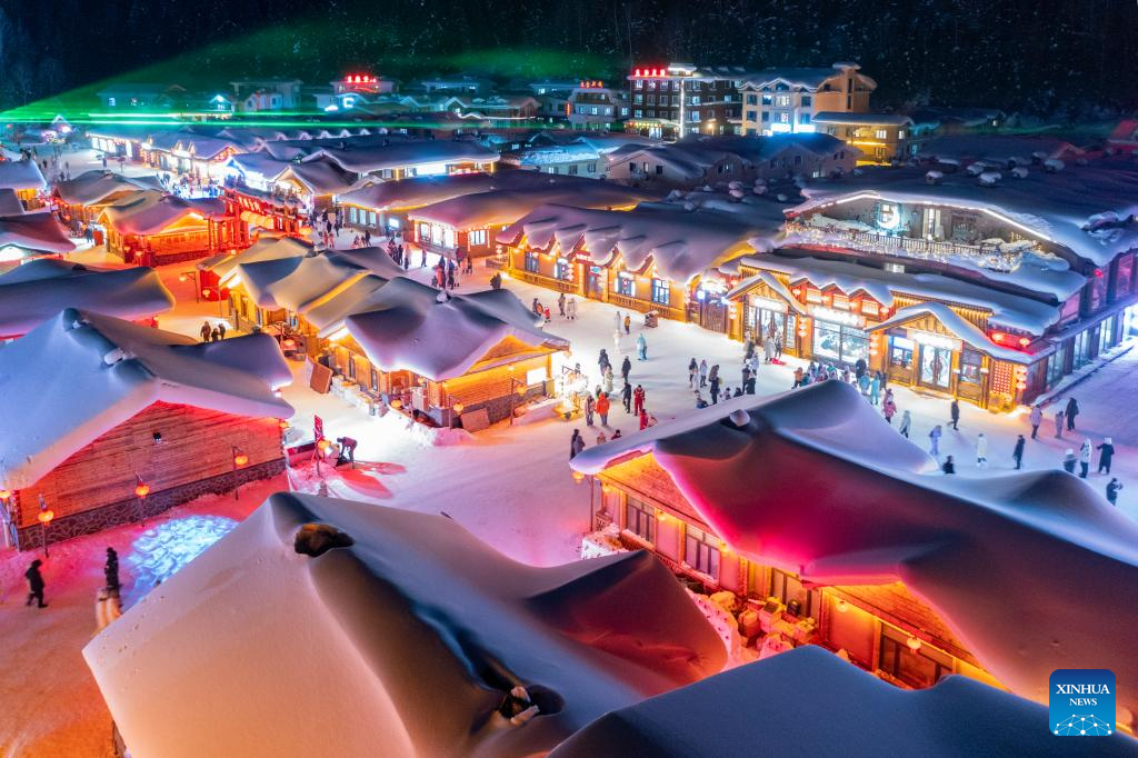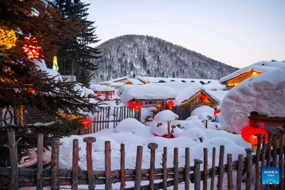 Located in the city of Mudanjiang of Heilongjiang Province, the China's "Snow Town," transformed from a forest farm, rose to fame in recent years thanks to its unique setting and climate. The snow season here can last up to seven months a year. The "Snow Town" has also been upgrading its infrastructure to provide better services for its tourists. As the Chinese New Year is coming, the white snow and red lanterns create a strong Spring Festival vibe, attracting tourists from all over. (Xinhua/Xie Jianfei)