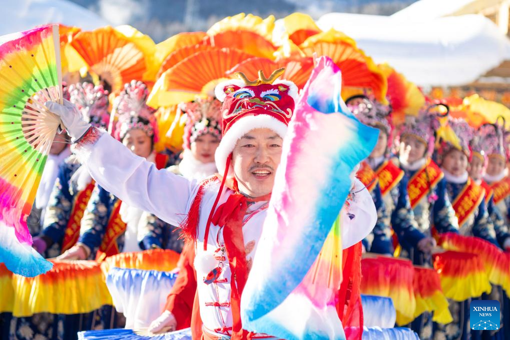 Actors perform at China's "Snow Town" scenic spot in Mudanjiang, northeast China's Heilongjiang Province, Jan. 25, 2025.