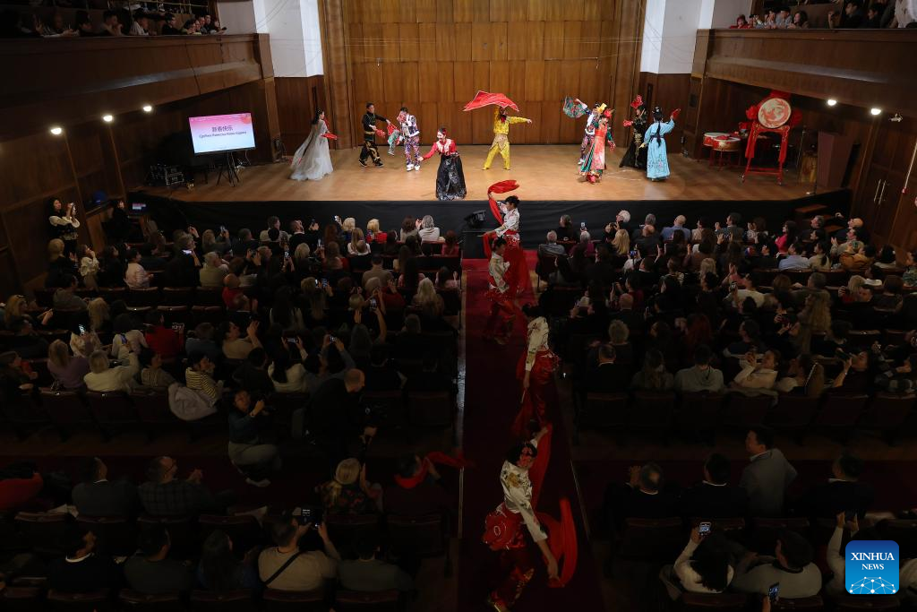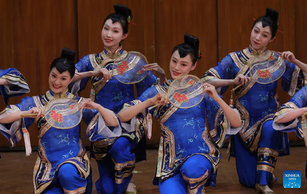 Chinese artists from Jilin Art Troupe perform to celebrate the upcoming Spring Festival at the Kolarac Concert Hall in Belgrade, Serbia, on Jan. 23, 2025. (Photo by Predrag Milosavljevic/Xinhua)