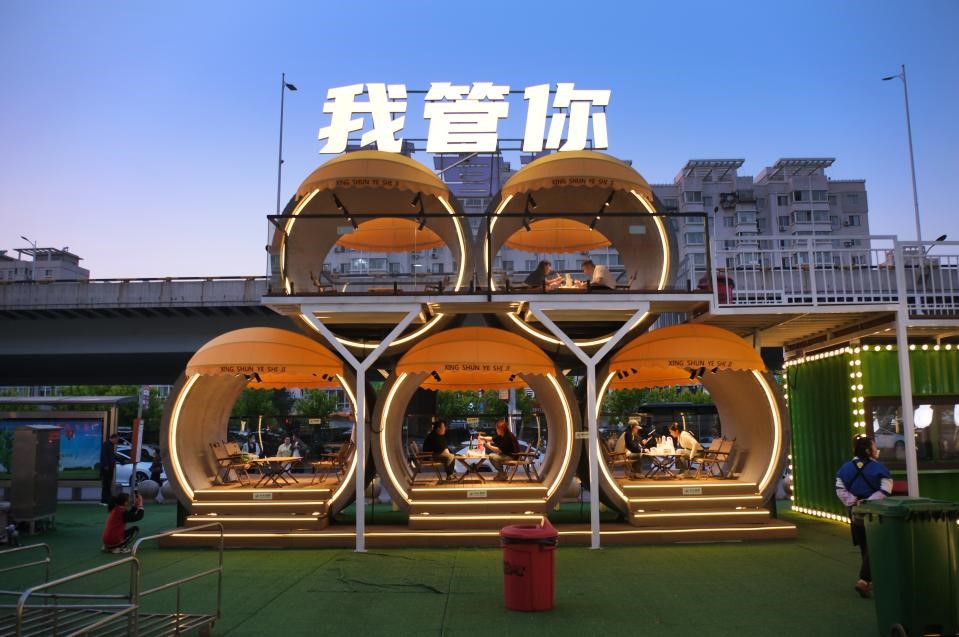 Citizens dine in a restaurant transformed from semi-closed tubes in Shenyang, northeast China's Liaoning province, May 7, 2024. (Photo by Huang Jinkun/People's Daily Online)