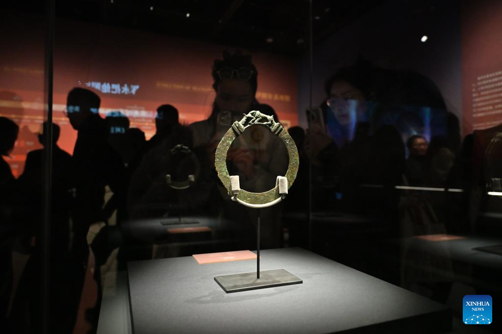 Visitors take photos of a token of authority at an exhibition of Persian artifacts in Sichuan University Museum in Chengdu, southwest China's Sichuan Province, Jan. 25, 2025. The exhibition kicked off here Saturday, showcasing 151 historical pieces or sets of artifacts, which included ceramic, metal and glass objects, as well as textiles, carpets and paintings, from five museums in Iran. (Xinhua/Xue Chen)