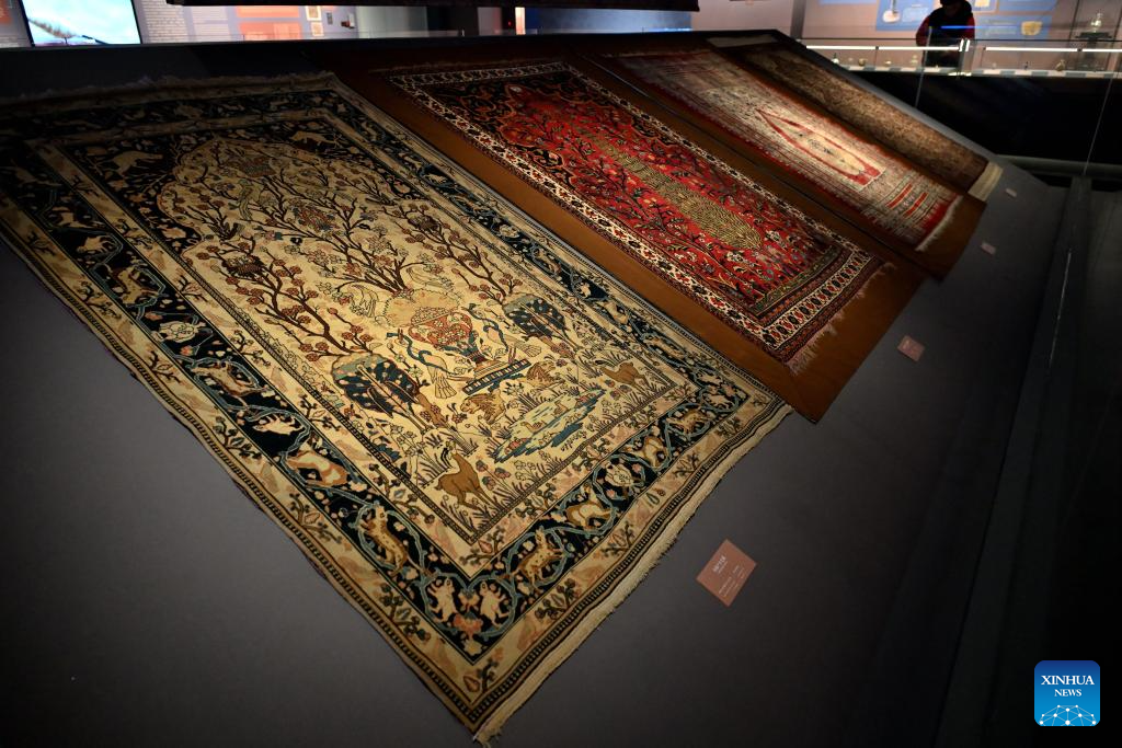Persian carpets are on display at an exhibition of Persian artifacts in Sichuan University Museum in Chengdu, southwest China's Sichuan Province, Jan. 25, 2025. The exhibition kicked off here Saturday, showcasing 151 historical pieces or sets of artifacts, which included ceramic, metal and glass objects, as well as textiles, carpets and paintings, from five museums in Iran. (Xinhua/Xue Chen)