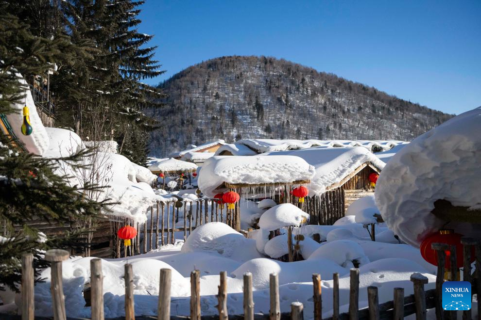 This photo taken on Jan. 25, 2025 shows a view of China's "Snow Town" scenic spot along the Yaxue Road in Mudanjiang, northeast China's Heilongjiang Province. As part of national highway G333, Yaxue Road connects Harbin, Yabuli, and "Snow Town," all of them iconic winter tourist attractions in northeast China, offering visitors the natural and cultural charm of the region. (Xinhua/Xie Jianfei)
