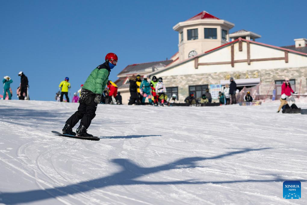 People visit the Yabuli Ski Resort along the Yaxue Road in Harbin, northeast China's Heilongjiang Province, Jan. 16, 2025. As part of national highway G333, Yaxue Road connects Harbin, Yabuli, and "Snow Town," all of them iconic winter tourist attractions in northeast China, offering visitors the natural and cultural charm of the region. (Xinhua/Xie Jianfei)