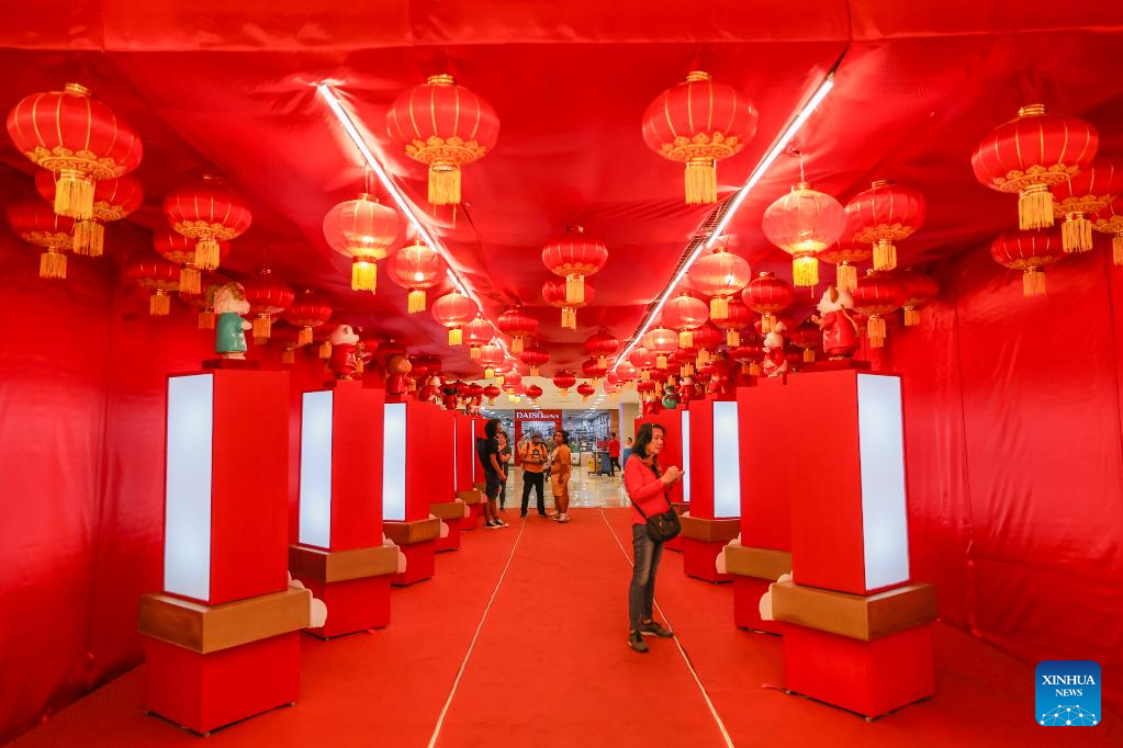 People walk through a hallway full of Spring Festival decorations at a mall in Chinatown in Manila, the Philippines, on Jan. 27, 2025. The Spring Festival, or the Chinese New Year, falls on Jan. 29 this year. (Xinhua/Rouelle Umali)