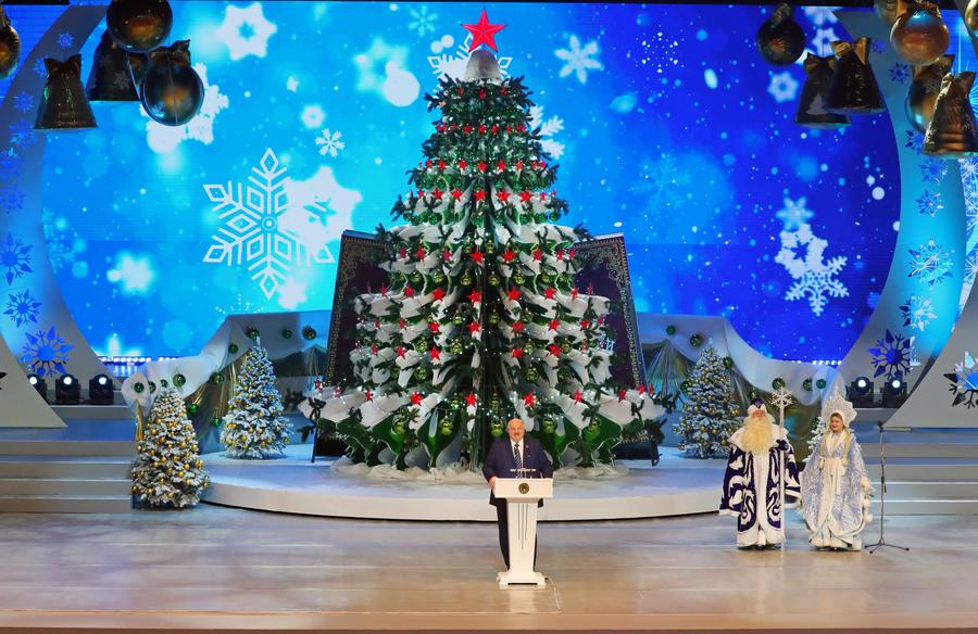 Belarusian President Alexander Lukashenko delivers a speech at a New Year celebration for children in Minsk, capital of Belarus, Dec. 27, 2024. (Photo by Henadz Zhinkov/Xinhua)