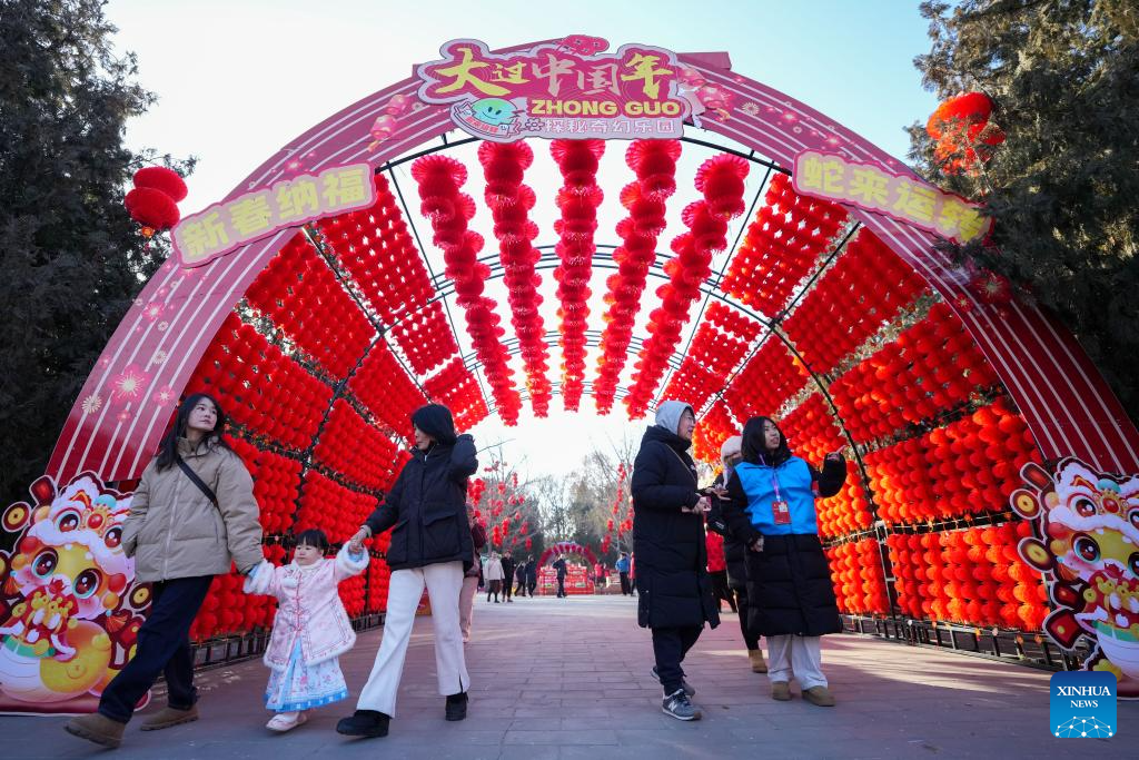 Tourists visit a Spring Festival temple fair at Ditan Park in Beijing, capital of China, Jan. 29, 2025. (Xinhua/Ju Huanzong)