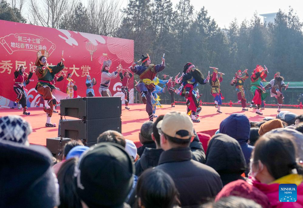 A performance is staged on a Spring Festival temple fair at Ditan Park in Beijing, capital of China, Jan. 29, 2025. (Xinhua/Ju Huanzong)