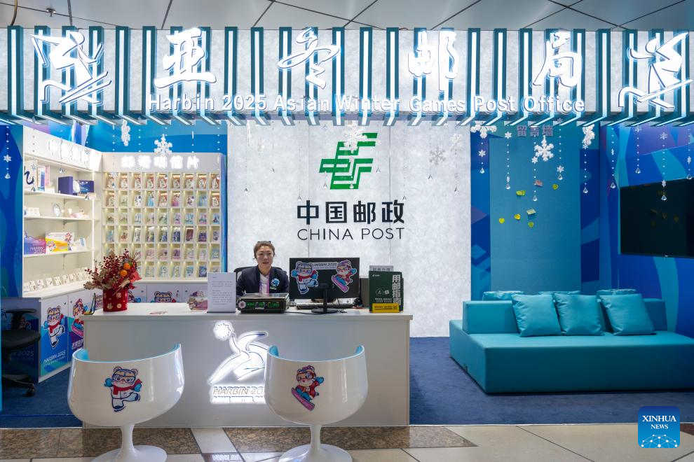 Picture taken on Jan. 31, 2025 shows the post office in the Main Media Center (MMC) of the 2025 Asian Winter Games in Harbin, northeast China's Heilongjiang Province. With a week to go before the opening ceremony of the 2025 Asian Winter Games in Harbin, the Main Media Center (MMC) started its official operation on Friday. (Xinhua/Zhang Tao)