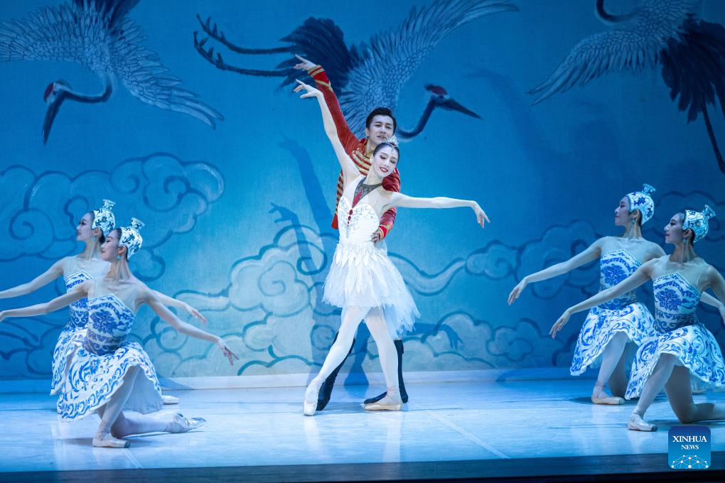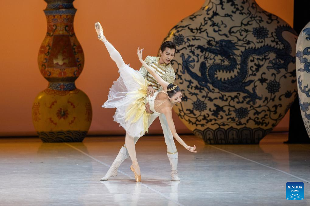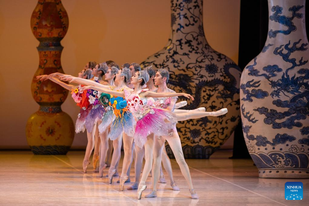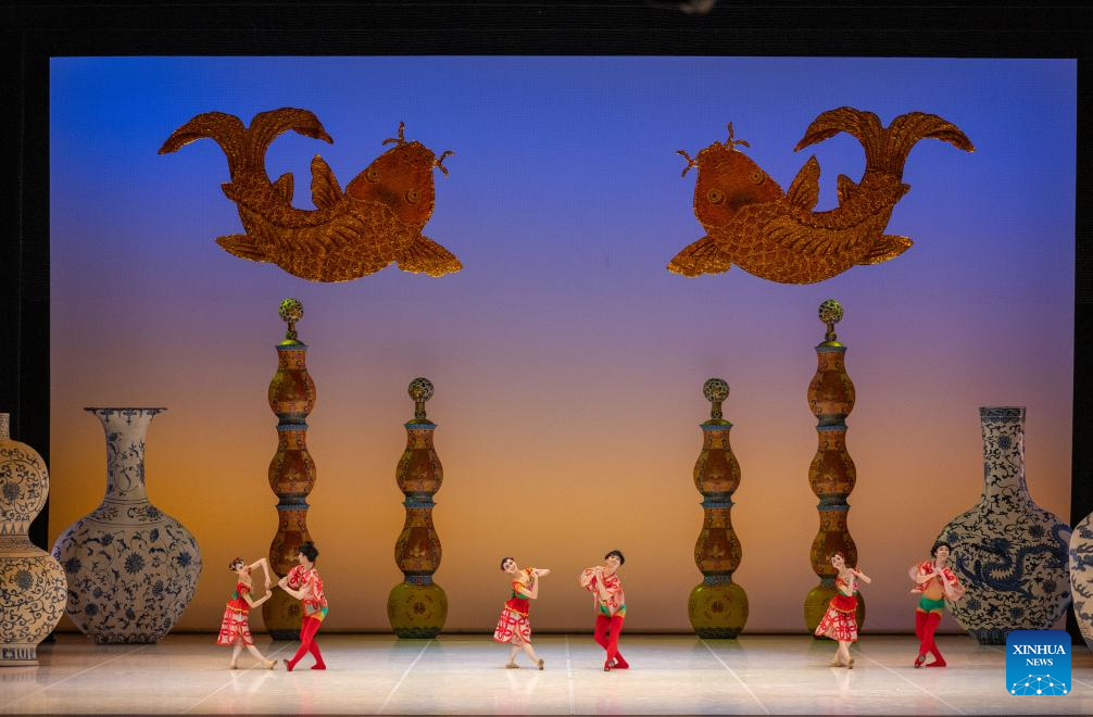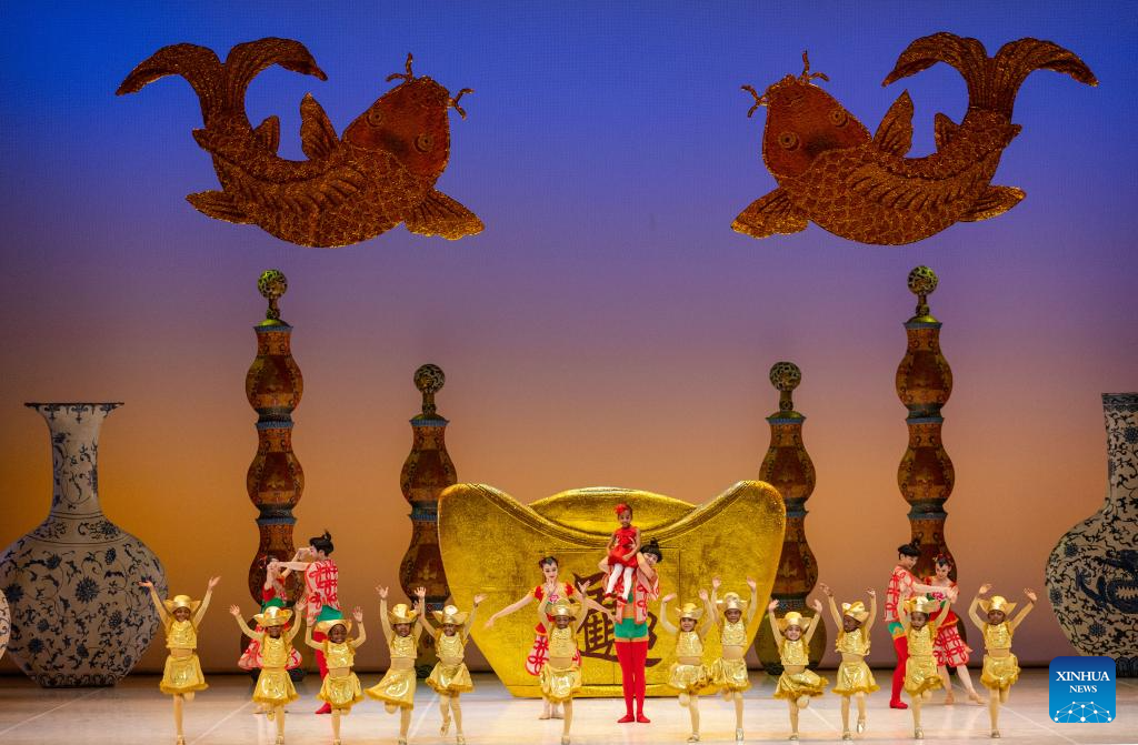 Artists from National Ballet of China perform ballet "The Chinese New Year" at the Kennedy Center for the Performing Arts in Washington, D.C., the United States, Jan. 29, 2025. "The Chinese New Year," a localized version of the classic ballet "The Nutcracker," debuted at the Kennedy Center for the Performing Arts in Washington, D.C. on Wednesday. (Xinhua/Hu Yousong)