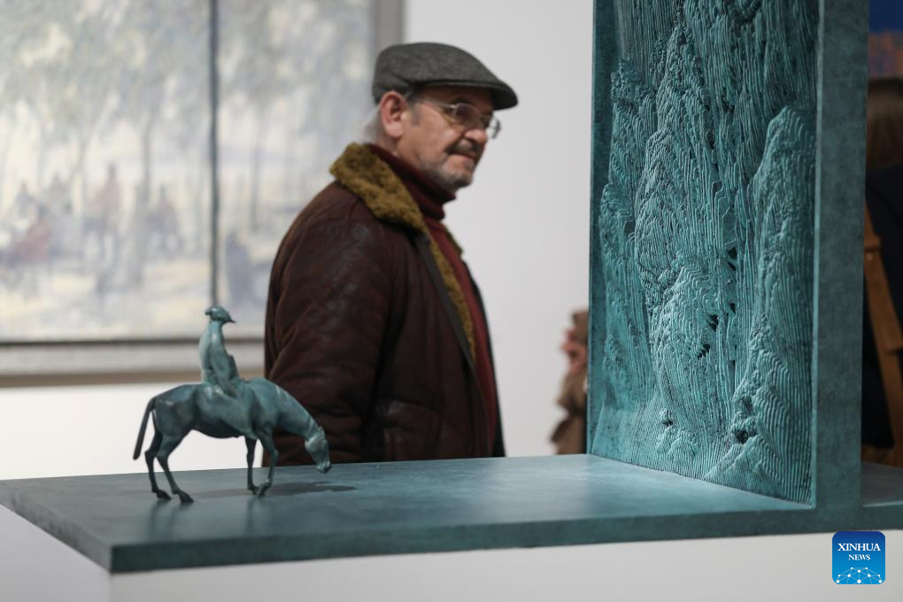 A man visits an exhibition of Chinese contemporary artworks at the National Gallery of Modern and Contemporary Art in Rome, Italy, Feb. 2, 2025. (Xinhua/Li Jing)