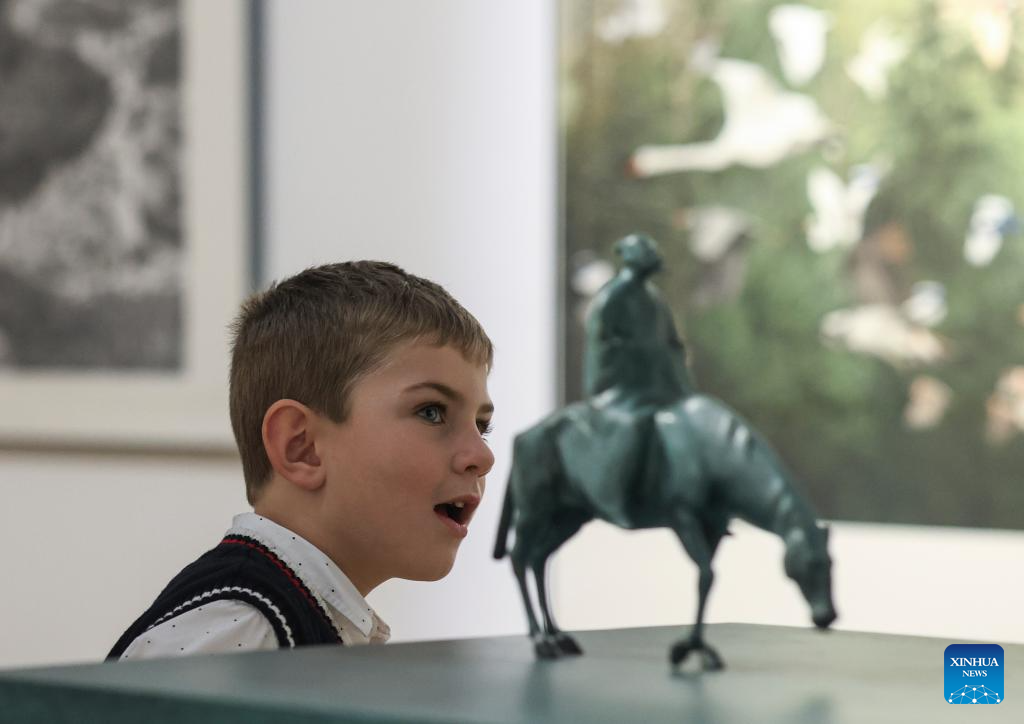 A boy visits an exhibition of Chinese contemporary artworks at the National Gallery of Modern and Contemporary Art in Rome, Italy, Feb. 2, 2025. (Xinhua/Li Jing)
