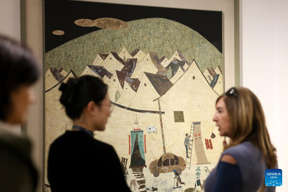People visit an exhibition of Chinese contemporary artworks at the National Gallery of Modern and Contemporary Art in Rome, Italy, Feb. 2, 2025. (Xinhua/Li Jing)
