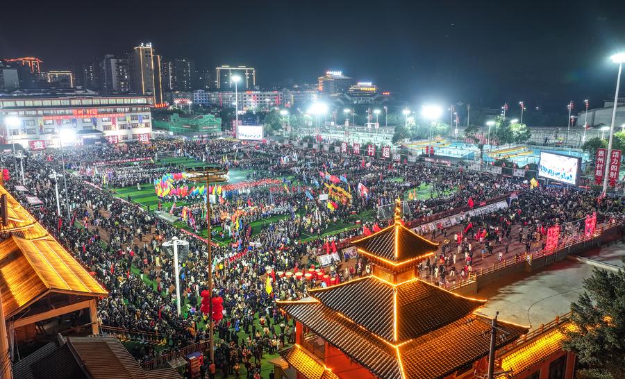 An aerial photo taken on Jan. 4, 2025 shows the opening ceremony of the 2025 Village Super League. (Xinhua/Yang Wenbin)