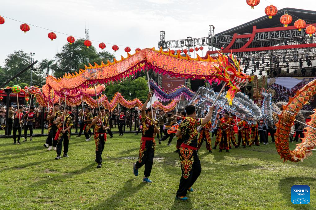 Dragon dancers perform in a celebration of the Chinese New Year at Denpasar in Bali Province, Indonesia, Feb. 1, 2025. (Photo by Dicky Bisinglasi/Xinhua)