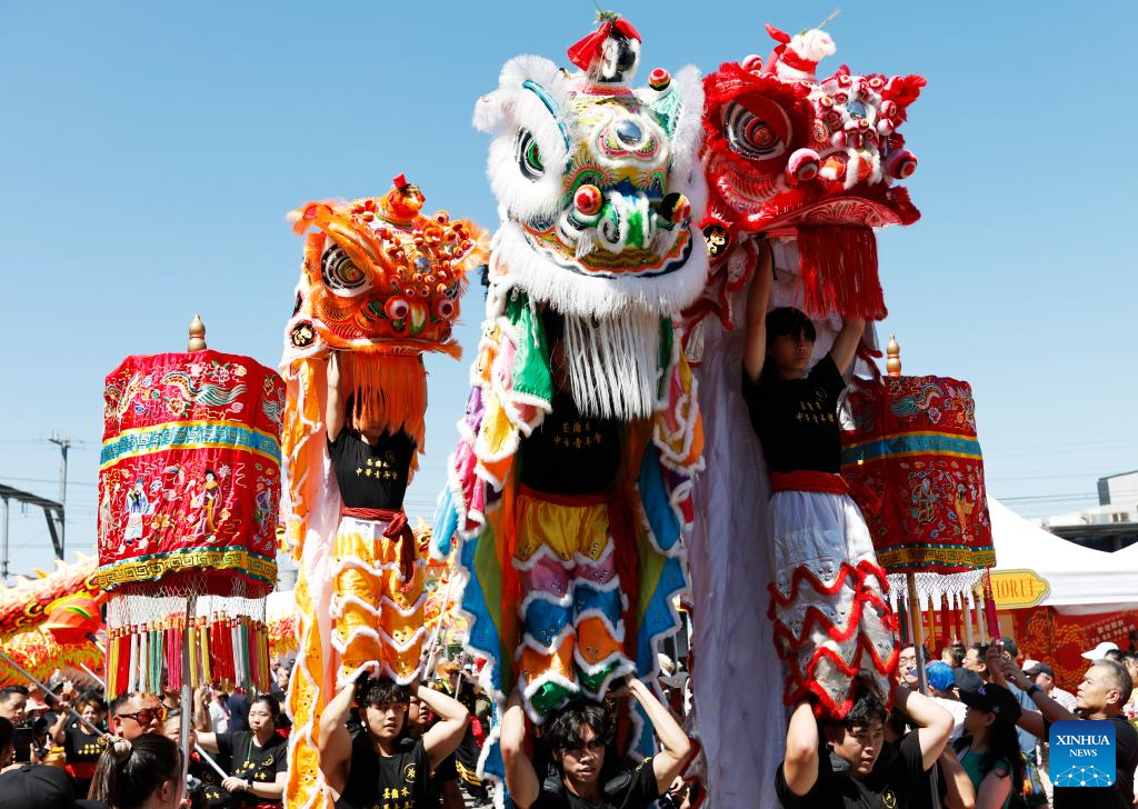 A lion dance is staged during a celebration of the Chinese New Year in Melbourne, Australia, Feb. 1, 2025. (Xinhua/Ma Ping)
