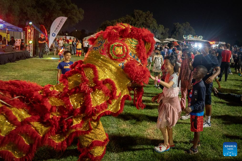 Lion dance performers interact with children during a Chinese New Year celebration event in Gauteng Province, South Africa, Feb. 1, 2025. (Photo by Shiraaz Mohamed/Xinhua)