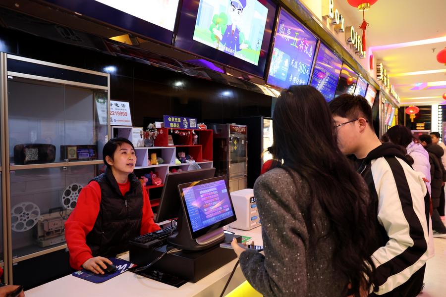 People purchase movie tickets at a cinema in Binzhou City, east China's Shandong Province, Feb. 2, 2025. (Photo by Chu Baorui/Xinhua)