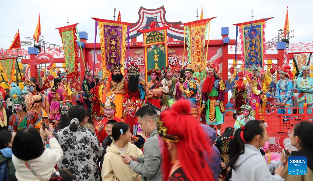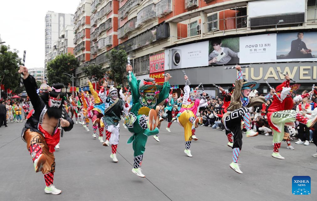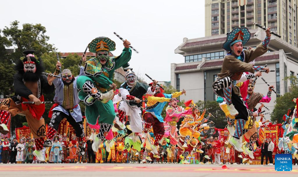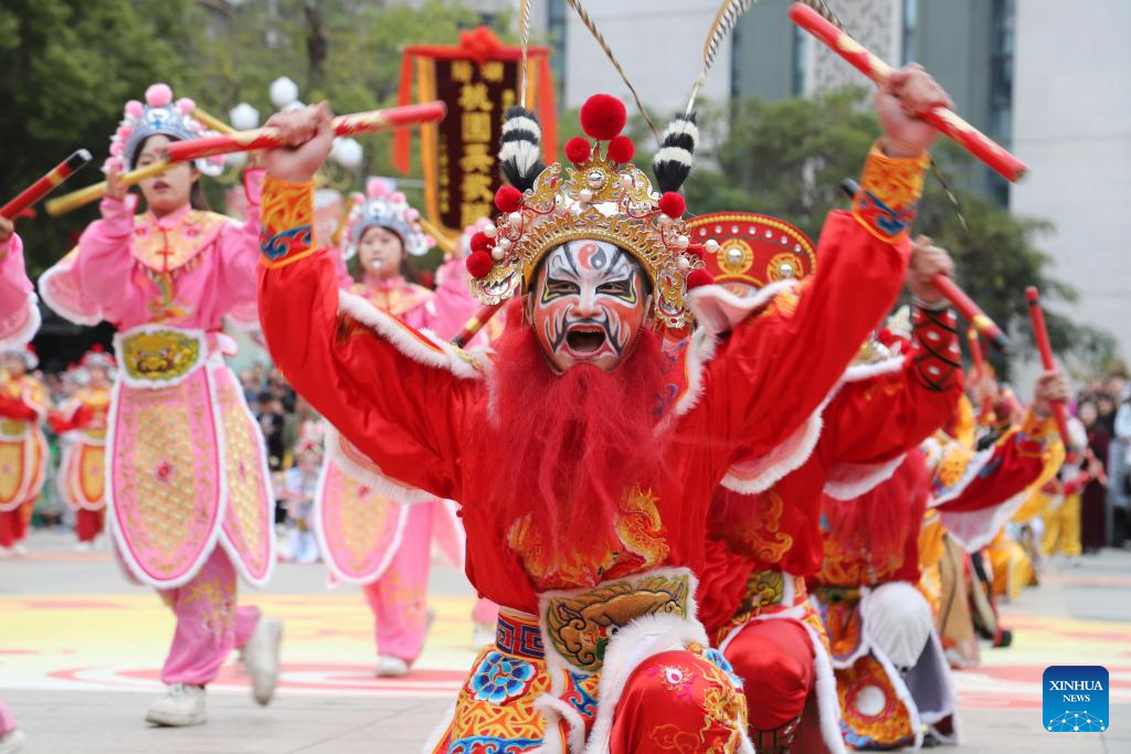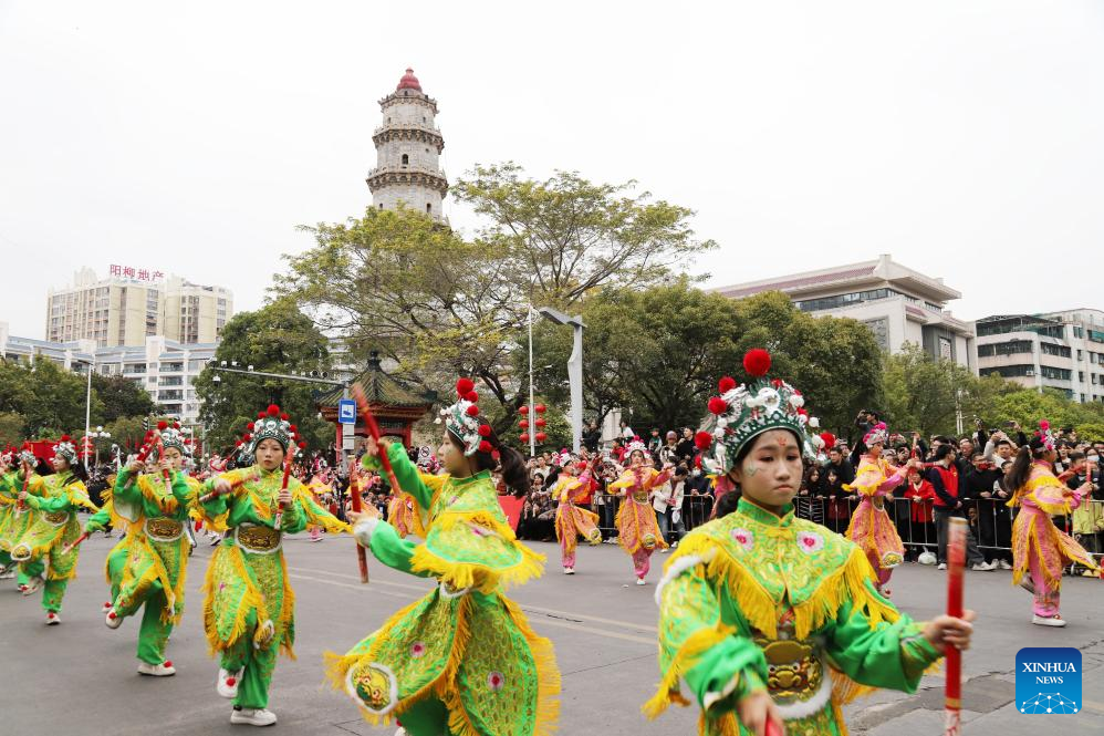 A Yingge dance team performs during an event celebrating the Spring Festival in Shantou, south China's Guangdong Province, Feb. 2, 2025. (Photo by Yao Jun/Xinhua)