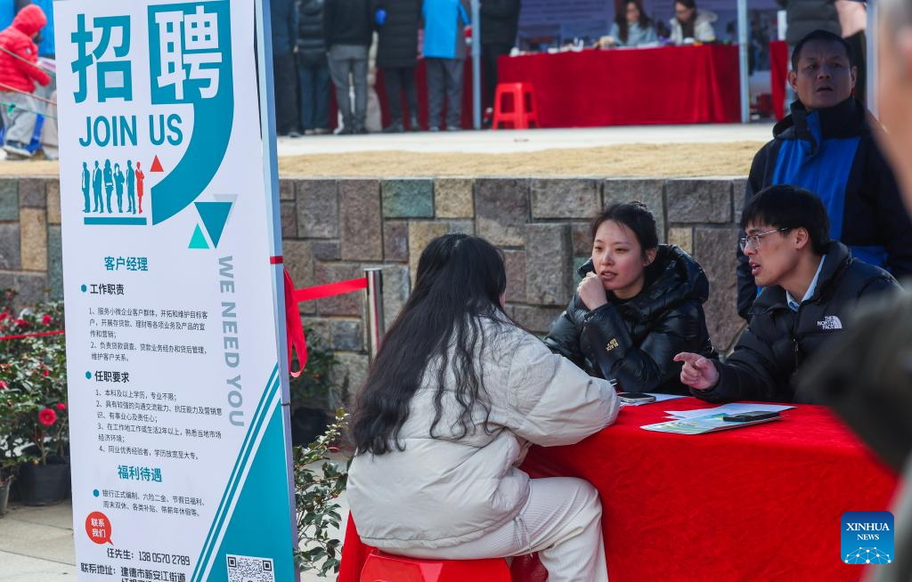Jobseekers attend a job fair held in Jiande City, east China's Zhejiang Province, Feb. 6, 2025. A job fair was held here on Thursday. Over 120 enterprises from a variety of industries such as new energy, new materials, intelligent manufacturing and biomedicine participated in the job fair, providing more than 3,000 jobs. (Xinhua/Xu Yu)