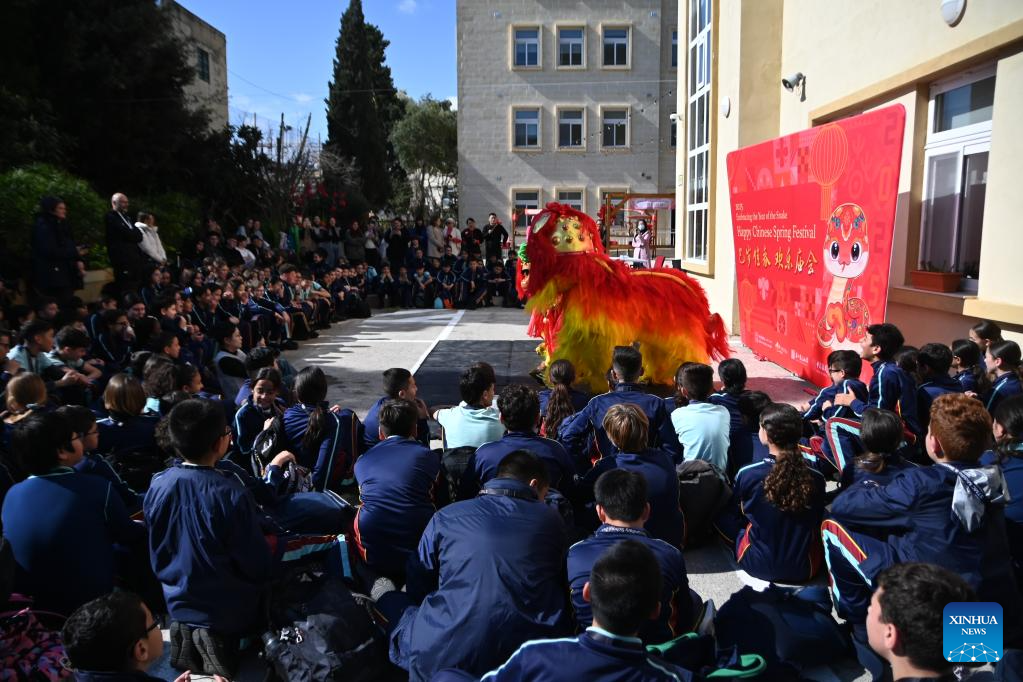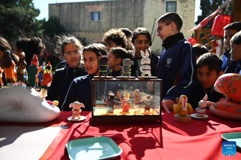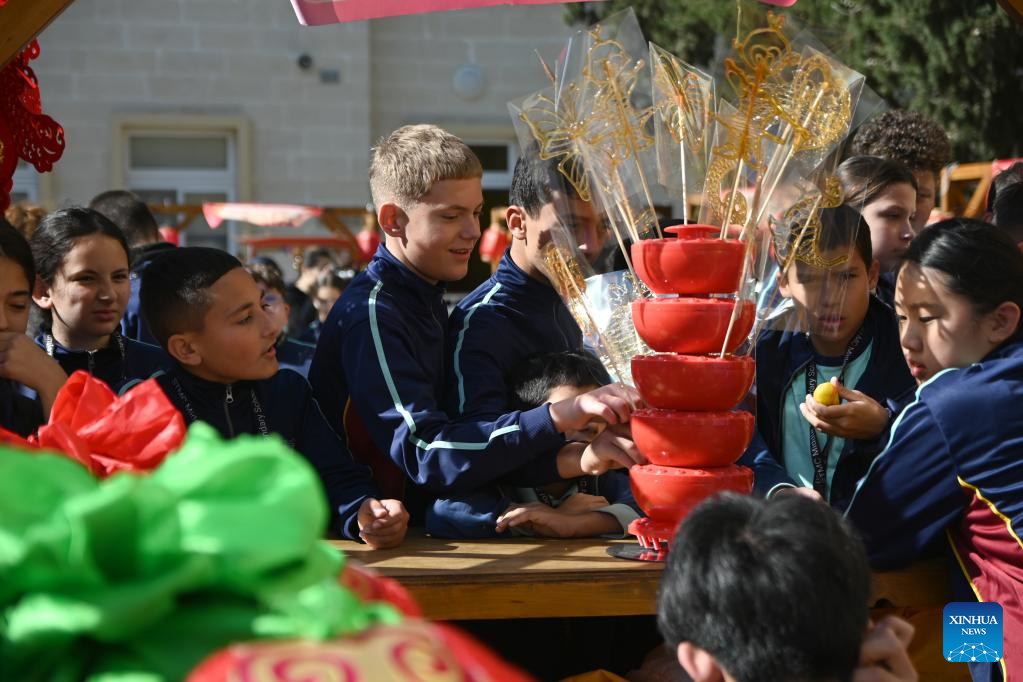 VALLETTA, Feb. 6 (Xinhua) -- The campus of St. Thomas More College's middle and secondary school in Zejtun, southeastern Malta, came alive with festive cheer on Thursday as students experienced the vibrant atmosphere of a traditional Chinese Spring Festival temple fair.
