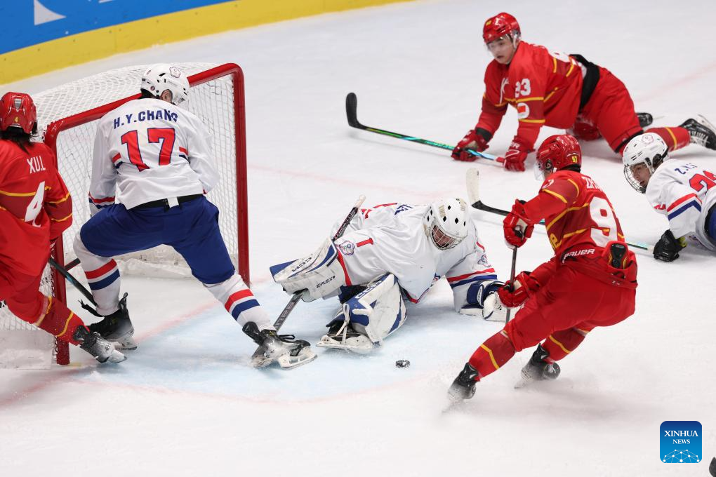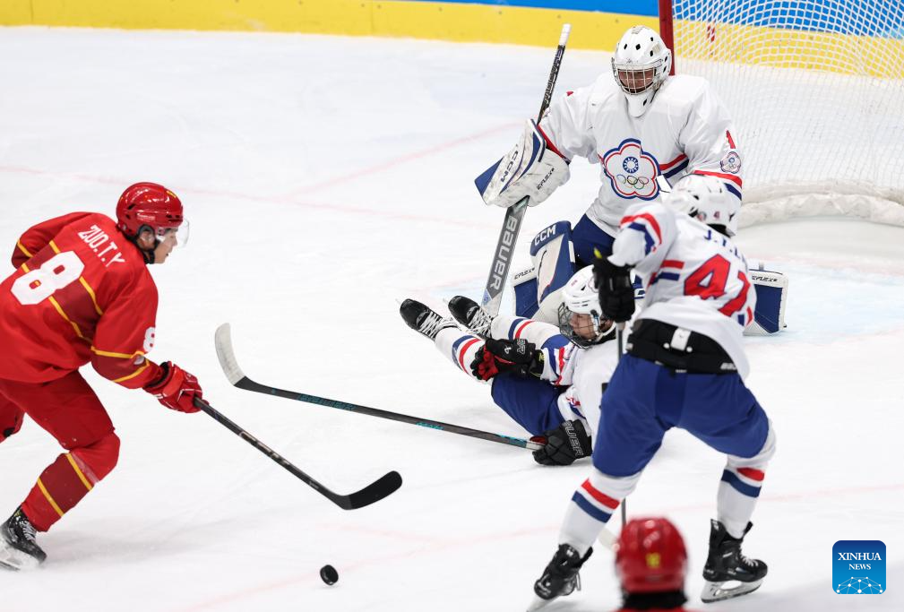HARBIN, Feb. 8 (Xinhua) -- China secured their second victory in the men's ice hockey Group A match at the 2025 Harbin Asian Winter Games with a 5-0 win over the Chinese Taipei on Saturday.