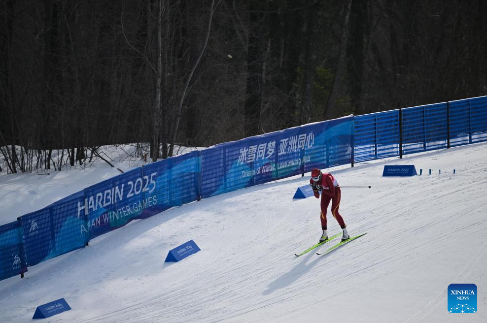 Dinigeer Yilamujiang of China competes during the women's sprint classic qualification match of the cross-country skiing event at the 9th Asian Winter Games in Yabuli, northeast China's Heilongjiang Province, Feb. 8, 2025. (Xinhua/Zhang Long)