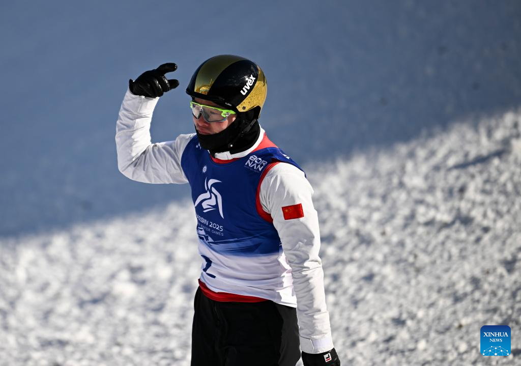 Qi Guangpu of China reacts during the Freestyle Skiing men's aerials final match at the 9th Asian Winter Games in Yabuli, northeast China's Heilongjiang Province, Feb. 9, 2025. (Xinhua/Xia Yifang)