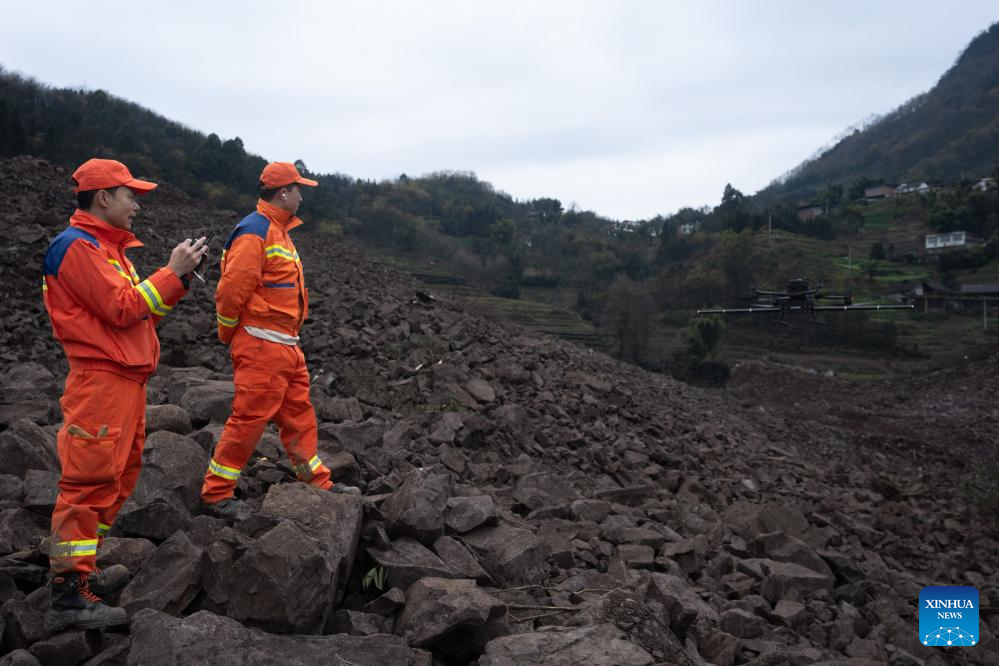 CHENGDU, Feb. 10 (Xinhua) -- Rescuers are working around the clock to locate survivors after a landslide hit a village in Sichuan Province, southwest China Saturday morning.