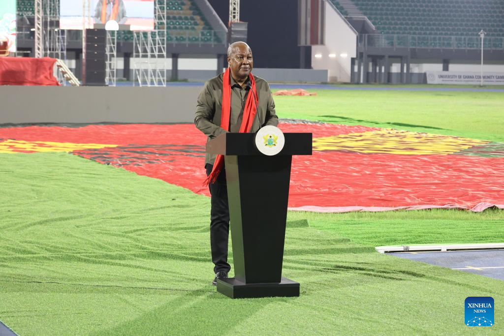 Ghanaian President John Dramani Mahama delivers a speech at the Chinese Lantern Festival celebration in Accra, Ghana, on Feb. 9, 2025. Mahama late Sunday joined the Chinese community in Ghana to mark the Chinese Lantern Festival, which falls on Wednesday this year. (Xinhua/Seth)