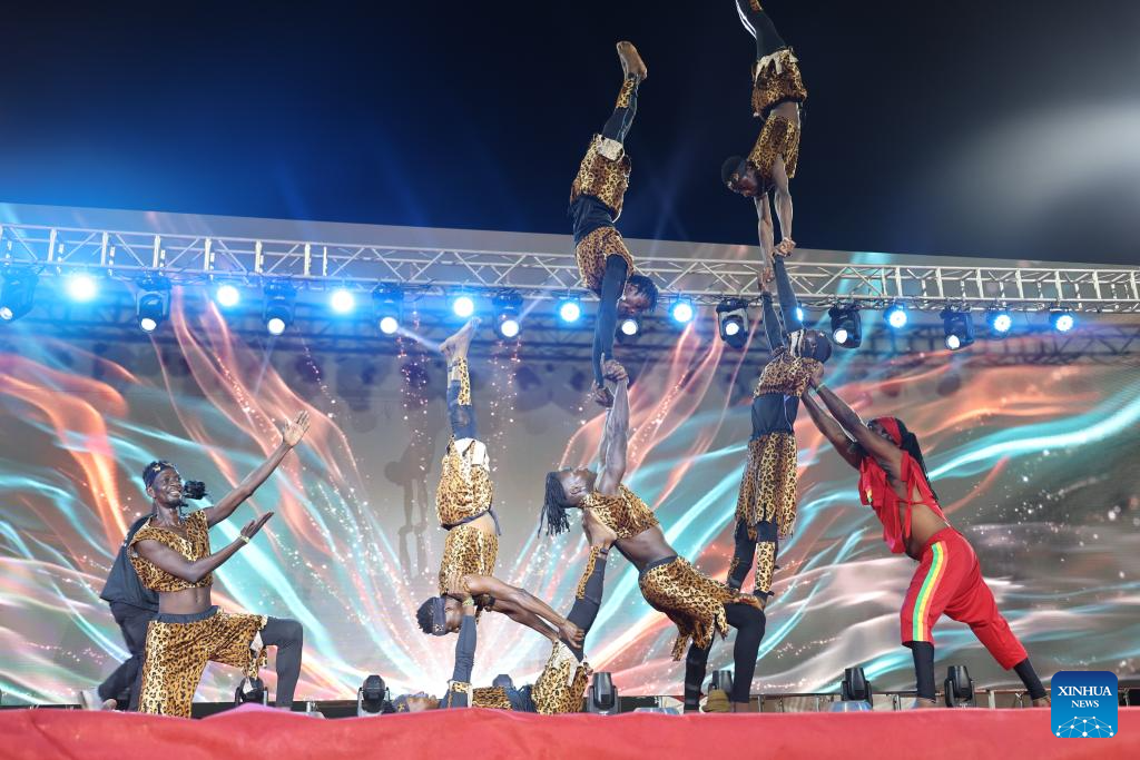 Ghanaian acrobats perform during a Chinese Lantern Festival celebration in Accra, Ghana, on Feb. 9, 2025. (Xinhua/Seth)