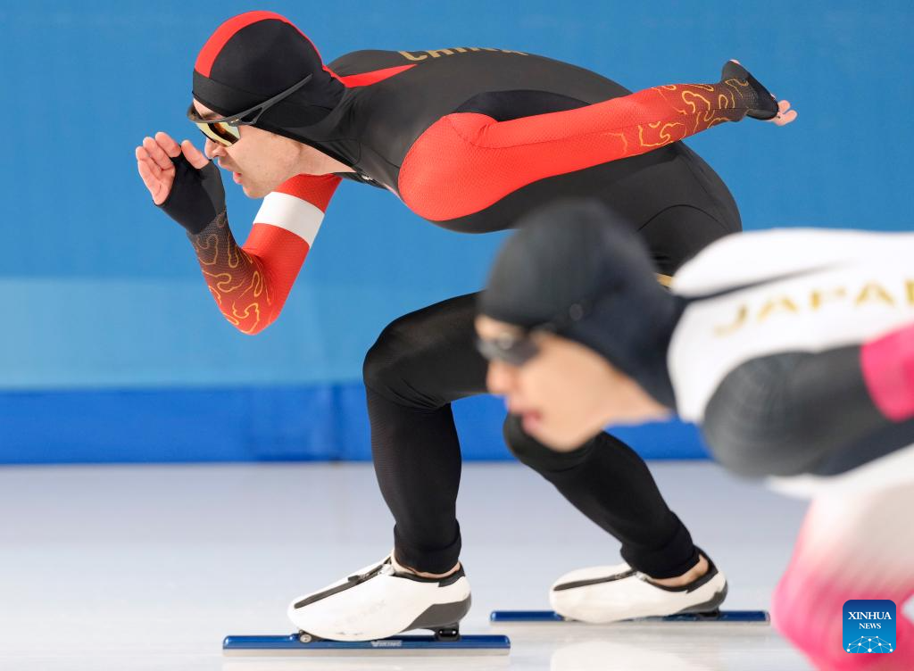 Lian Ziwen of China competes during the men's 1000m final match of the speed skating event at the 9th Asian Winter Games in Harbin, northeast China's Heilongjiang Province, Feb. 11, 2025. (Xinhua/Wang Jianwei)