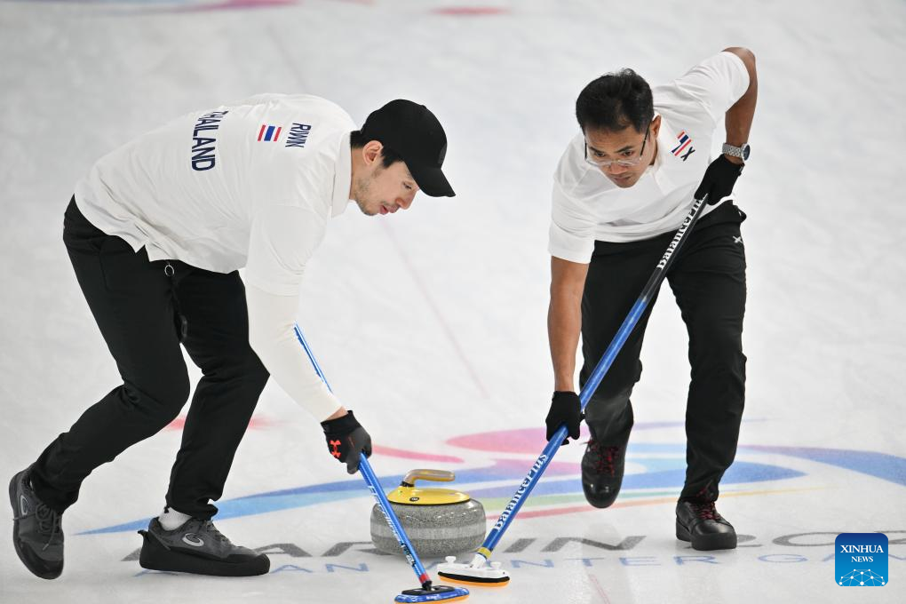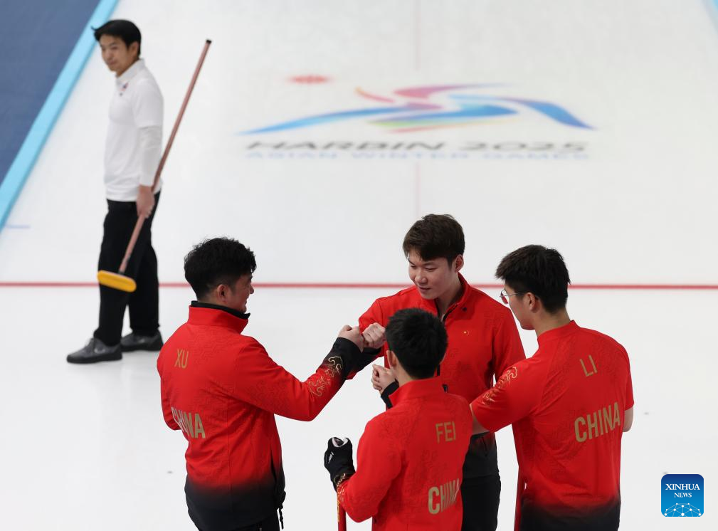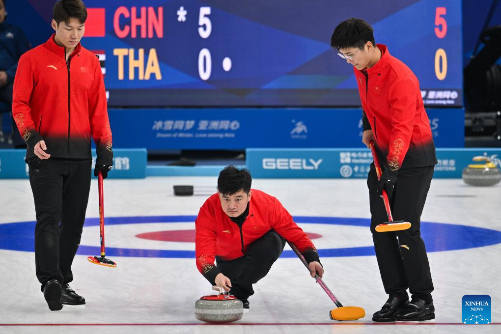 HARBIN, Feb. 11 (Xinhua) -- China secured a berth to the men's curling play-offs with one match remaining in the round robin after crushing Thailand 16-1 for a fourth consecutive win in Group B at the Harbin 2025 Asian Winter Games on Tuesday.