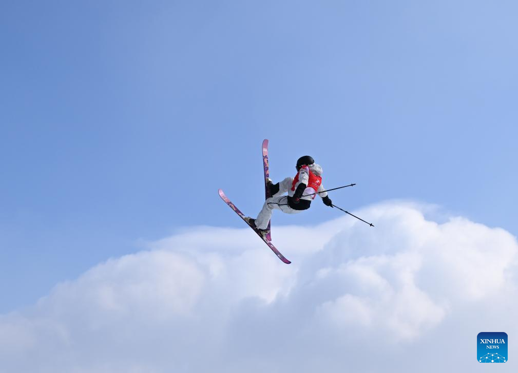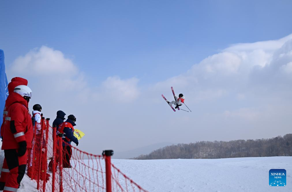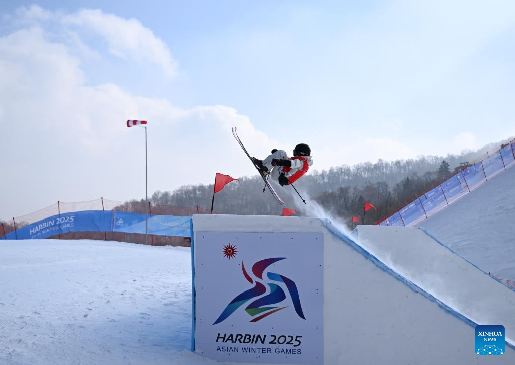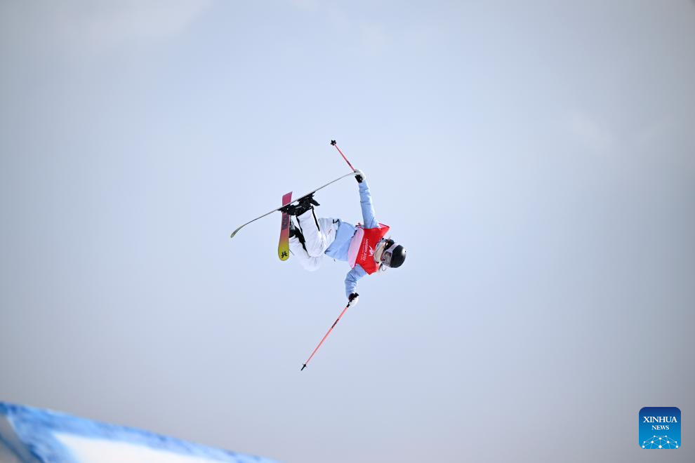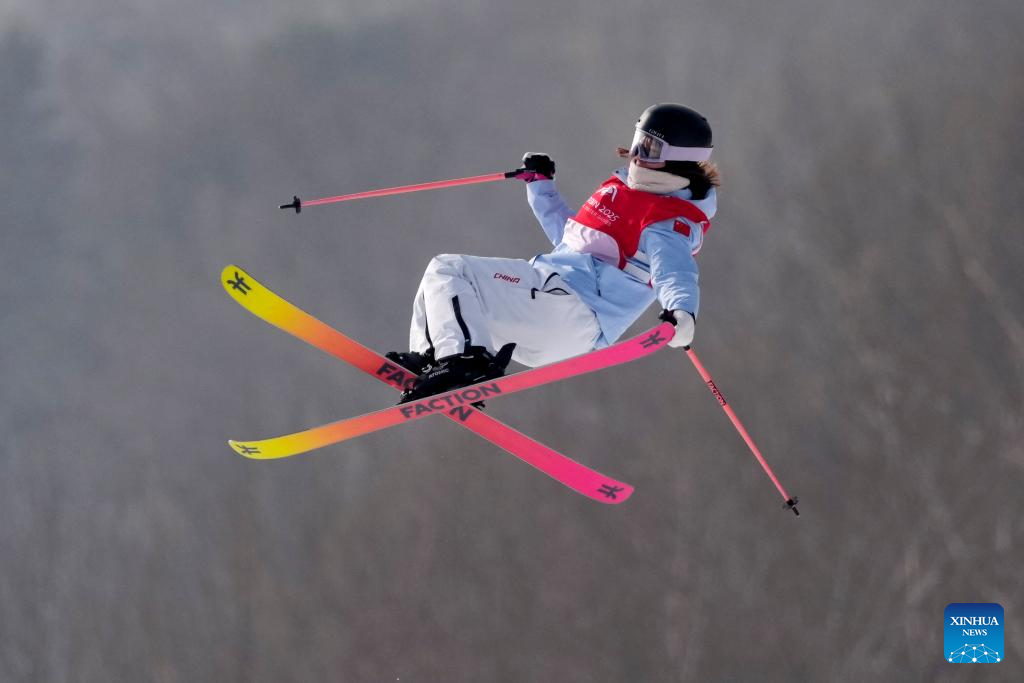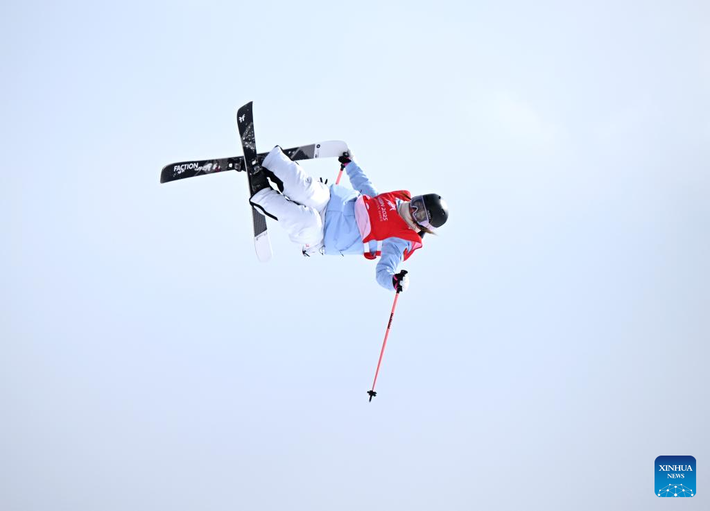 Han Linshan of China competes during the Freestyle Skiing women's freeski big air final match at the 9th Asian Winter Games in Yabuli, northeast China's Heilongjiang Province, Feb. 12, 2025. (Xinhua/Zhang Chenlin)