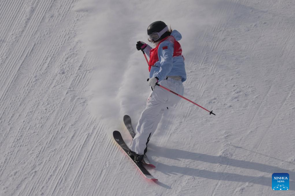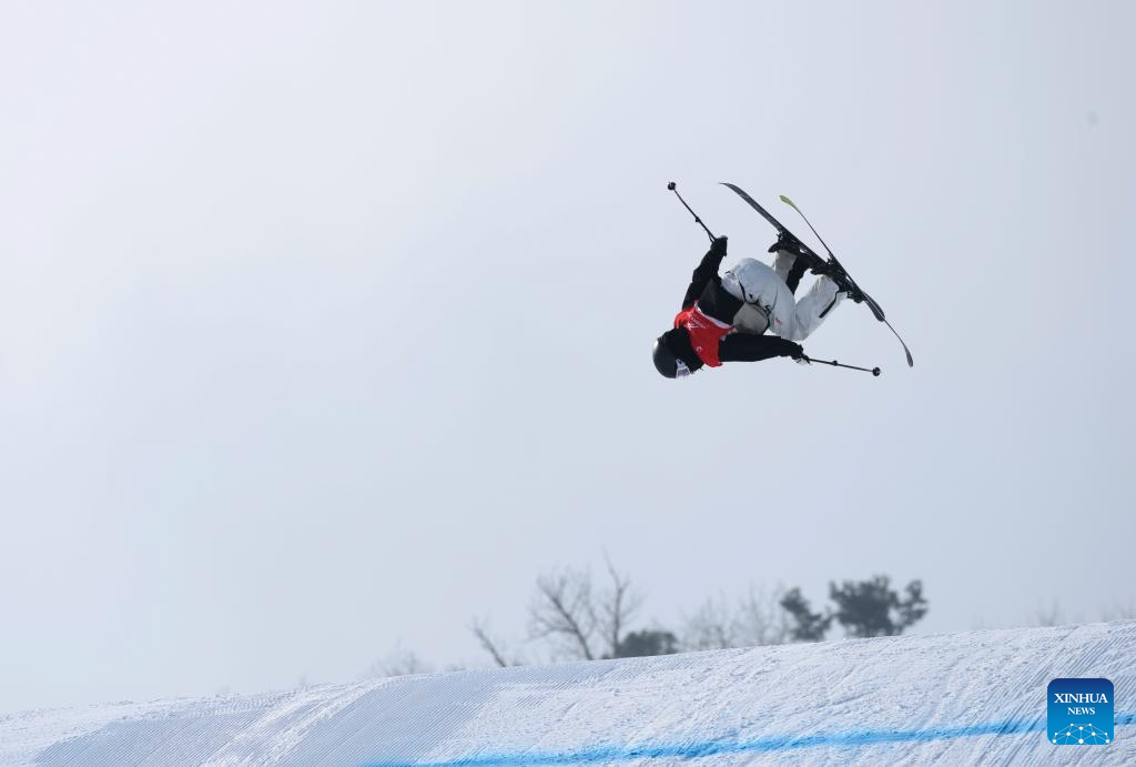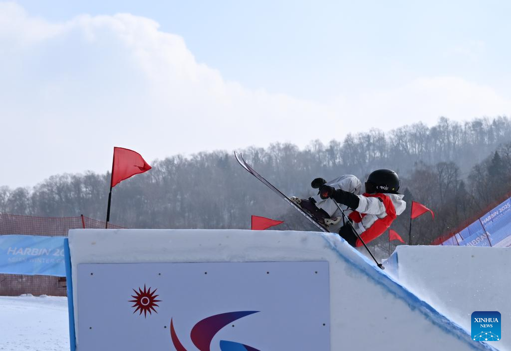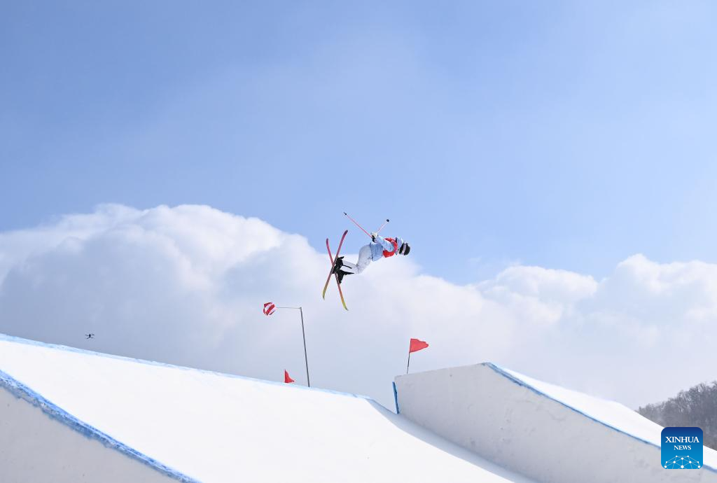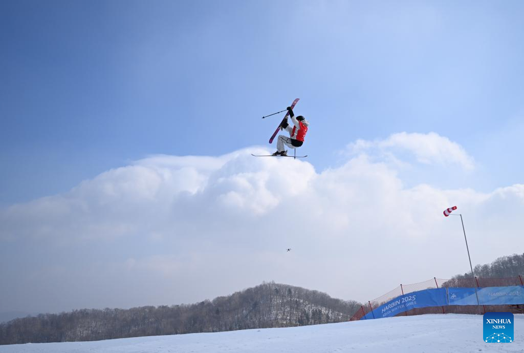Han Linshan of China competes during the Freestyle Skiing women's freeski big air final match at the 9th Asian Winter Games in Yabuli, northeast China's Heilongjiang Province, Feb. 12, 2025. (Xinhua/Zhang Chenlin)
