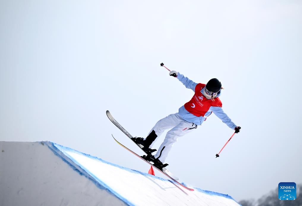 Liu Mengting of China competes during the Freestyle Skiing women's freeski big air at the 9th Asian Winter Games in Yabuli, northeast China's Heilongjiang Province, Feb. 12, 2025. (Xinhua/Xia Yifang)