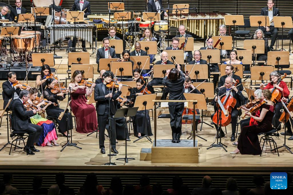Artists perform in a concert celebrating the Spring Festival by the New York Philharmonic in New York City, the United States, Feb. 11, 2025. (Photo by Winston Zhou/Xinhua)
