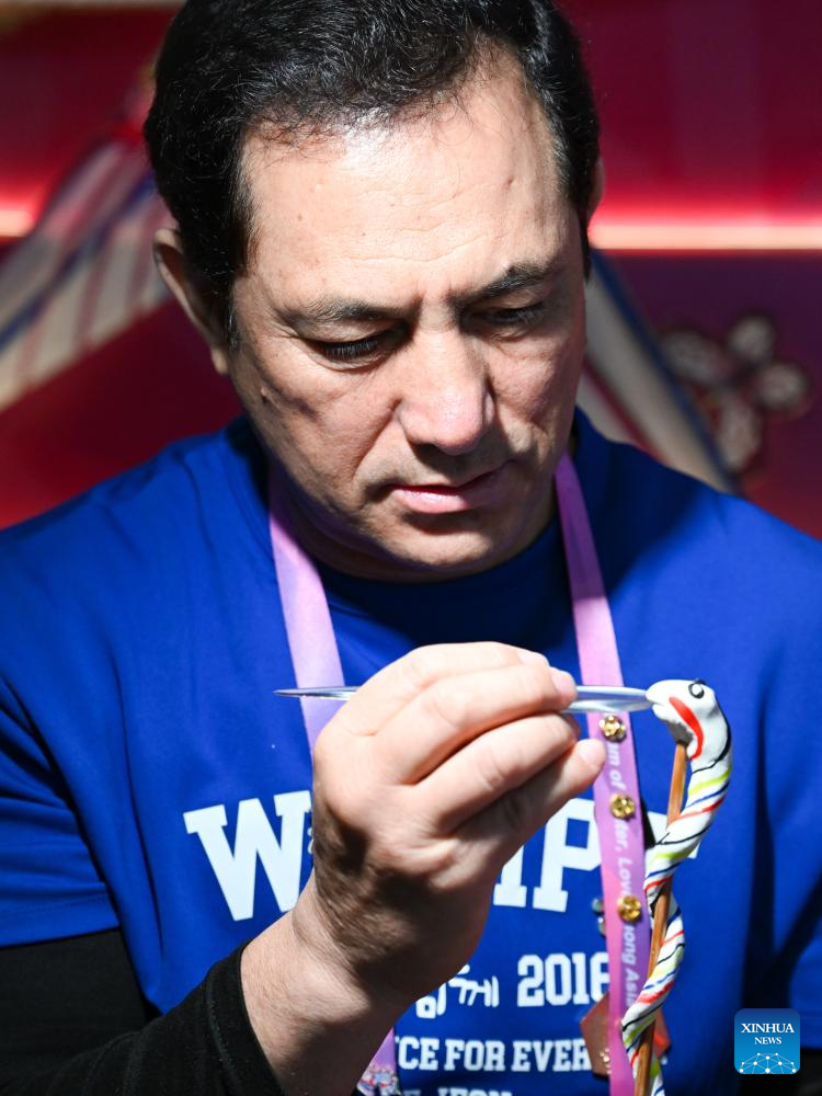 Delegation official Mohd Abbass of India makes flour figurines during a cultural event to celebrate the Lanter Festival at the athletes' village of the 9th Asian Winter Games in Harbin, northeast China's Heilongjiang Province, Feb. 12, 2025. (Xinhua/Wang Xi)